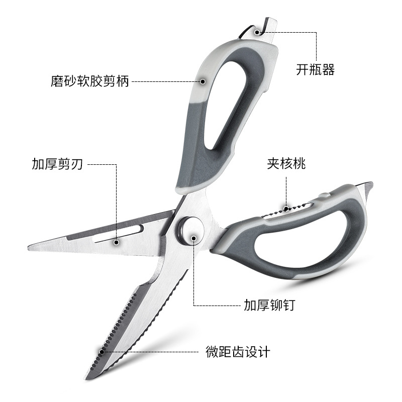Bailikin Scissors Kitchen Special Multifunctional Stainless Steel Strong Chicken Bone Scissors Household Barbecue Scissors Food Scissors