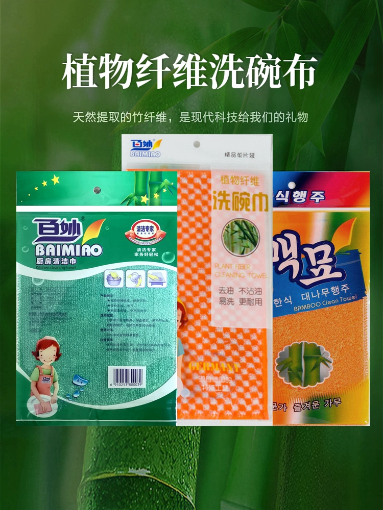 | nameOriginal | Baimiao Generation Bamboo Fiber Dishwashing Cloth Korean Bamboo Cleaning Towel Kitchen Rag Absorbent Non-stick Oil Antibacterial Deodorizing |