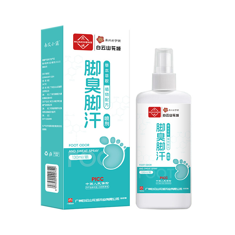 | nameOriginal | Baiyunshan Huacheng Foot Odor Foot Sweat Spray Anti-peeling Antiperspirant Foot Care Liquid Wolfram's Poison Foot Itchy Foot Aberiberi Net Spray |