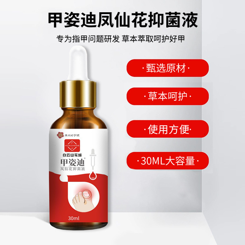 | nameOriginal | Baiyunshan Huacheng gray nail nail Zidi Phoenix Flower antibacterial liquid foot care liquid gray nail liquid |