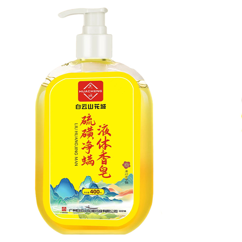 | nameOriginal | Baiyunshan Huacheng Sulfur Soap Shake Tone with Mite-removing Liquid Soap Body Mite-removing Body Soap Mite-removing Soap |