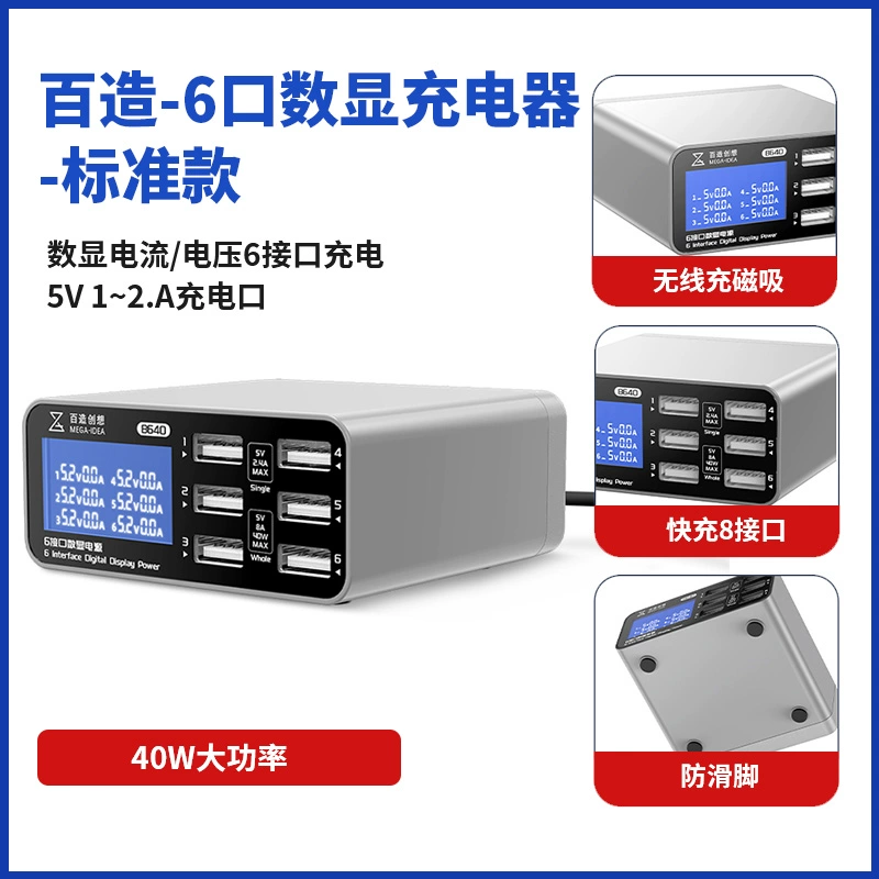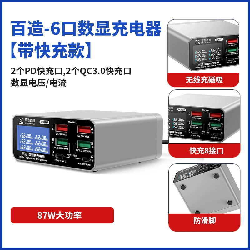 Baizhao multi-port USB charger, universal for IP Android phones, real-time display of current and voltage, dedicated for maintenance, wireless fast charger