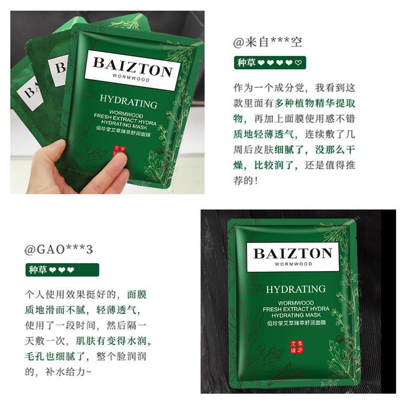 | nameOriginal | Baizhentang wormwood fresh extract comfortable mask moisturizing shrink pores improve acne refreshing mask wholesale |