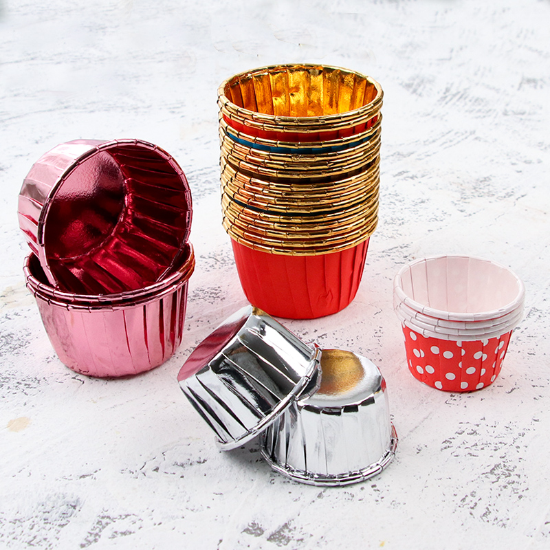 Baking packaging Mafen cup gold and silver cup paper cup oil-proof waterproof coated paper aluminum foil red roll cup high temperature resistant