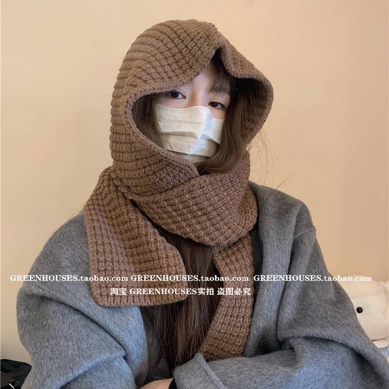Balaclava Hat Women's Autumn and Winter Thickened Warm Hat Bib Dual-use One-piece Ear Protection Wool Knitted Hat
