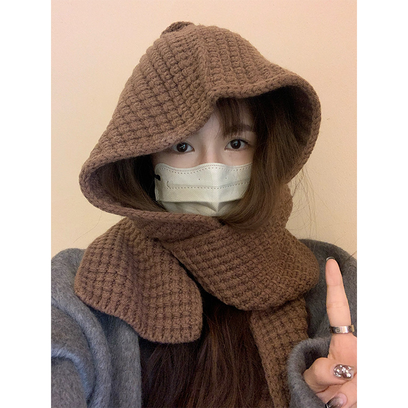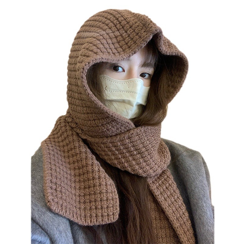 Balaclava Hat Women’s Autumn and Winter Thickened Warm Hat Bib Dual-use One-piece Ear Protection Wool Knitted Hat