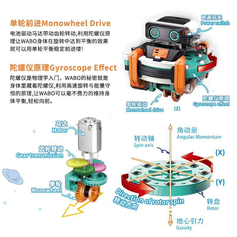 Balance tumbler unicycle gyroscope toy intelligent walking robot black technology will walk wire gyro