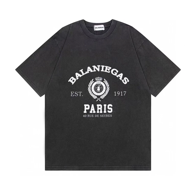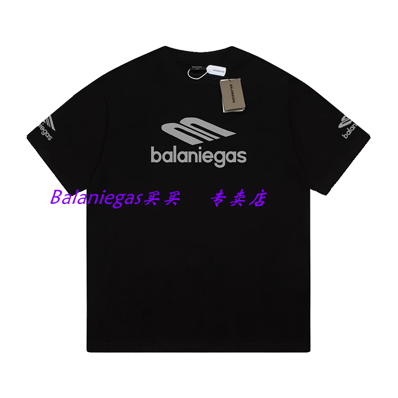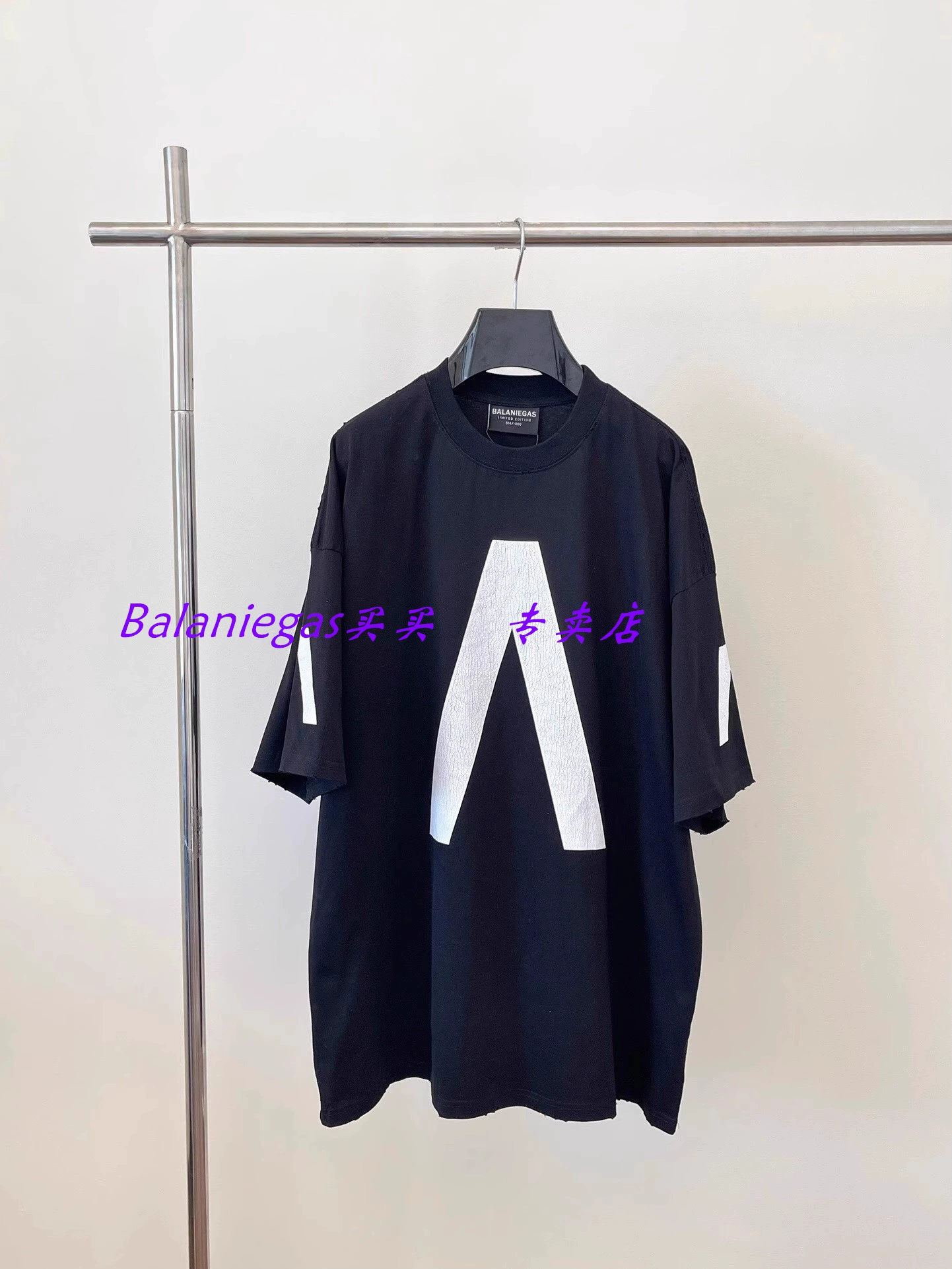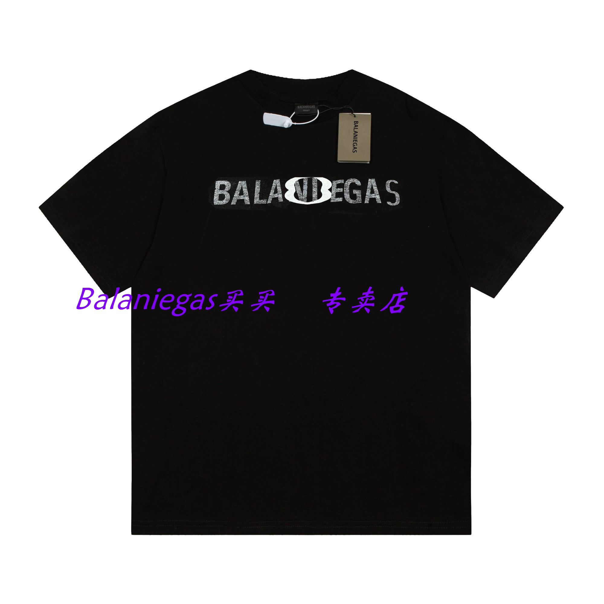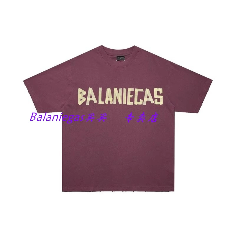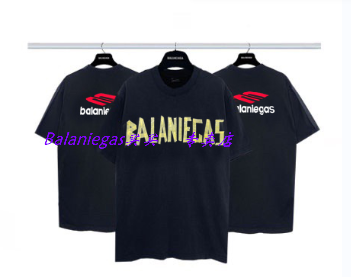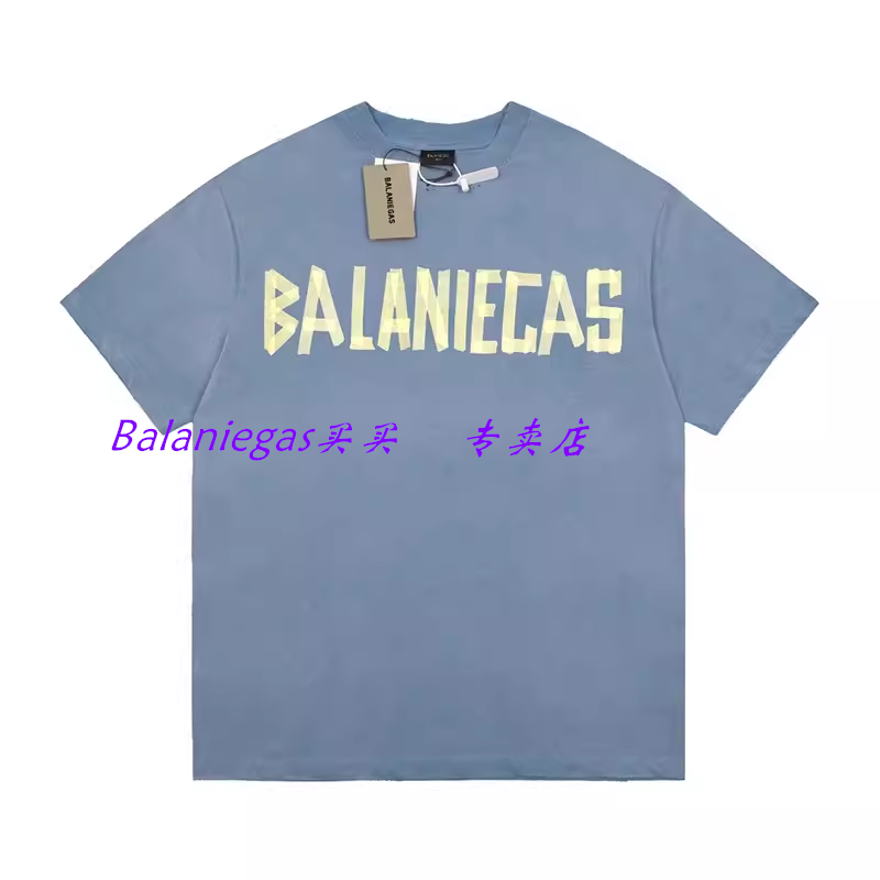 Balaniegas B home short -sleeved T -shirt Men’s alphabet printing all -off and destructive tape on both sides of the tide