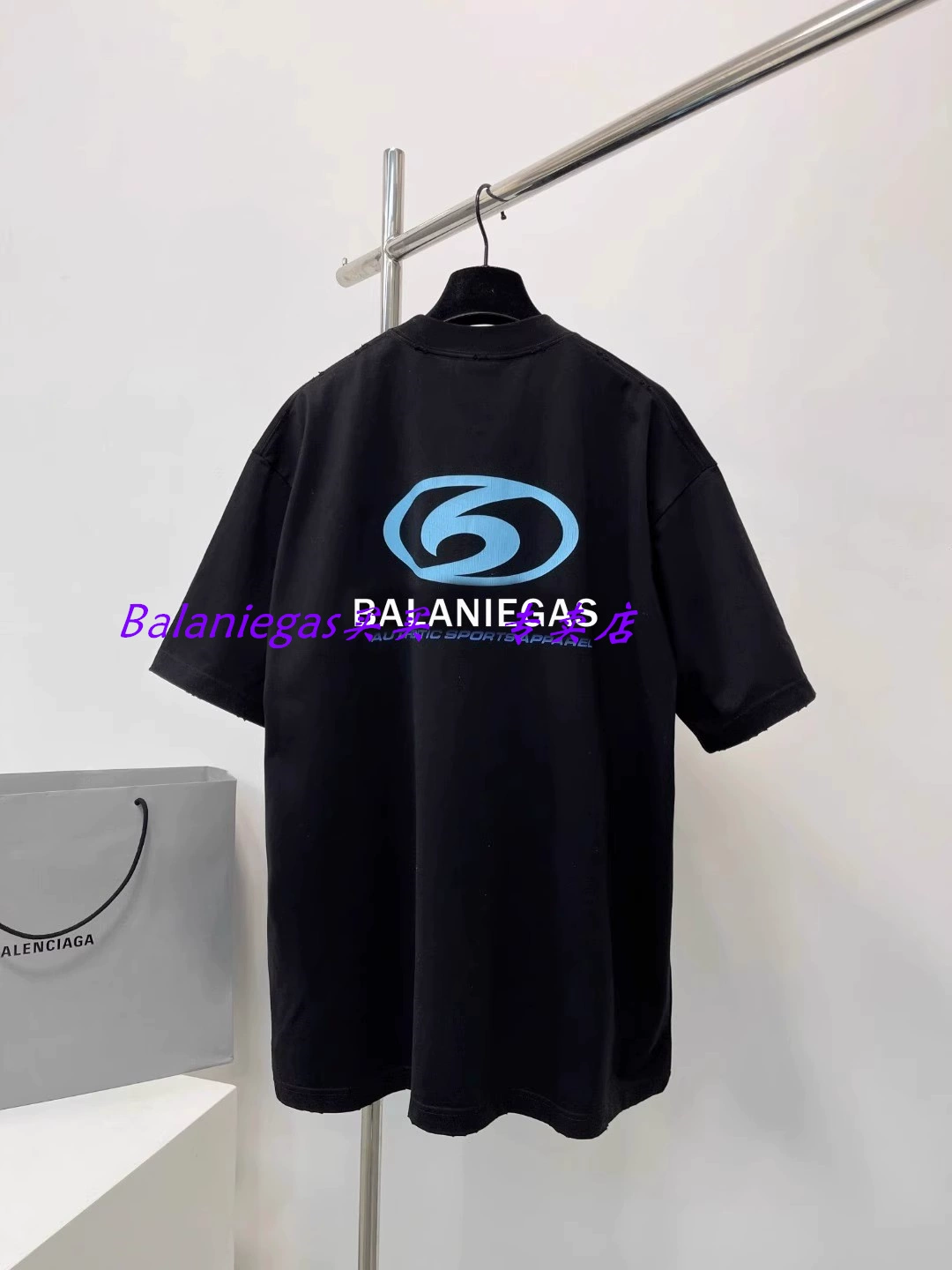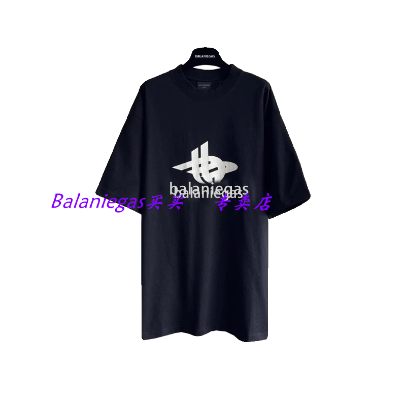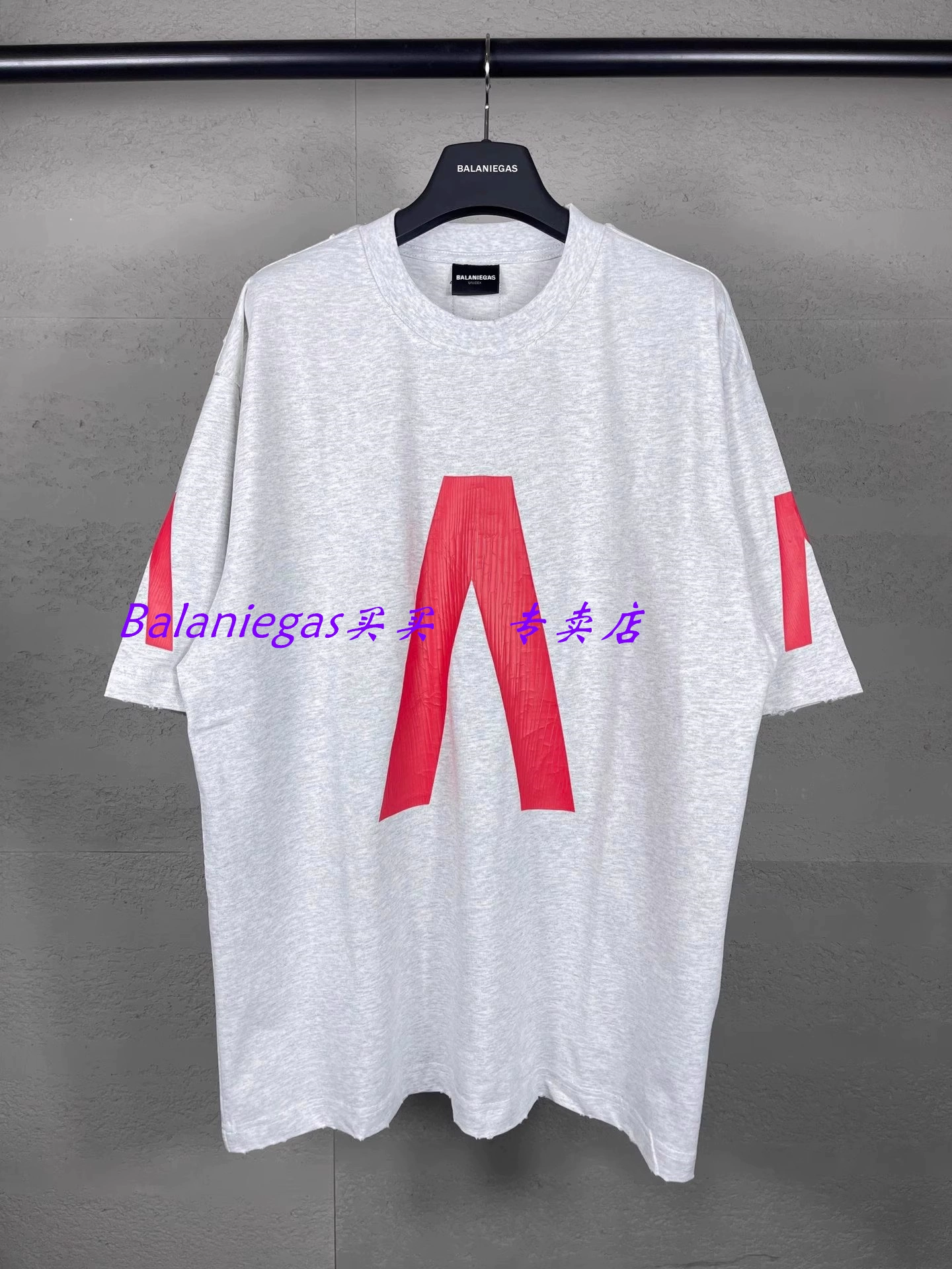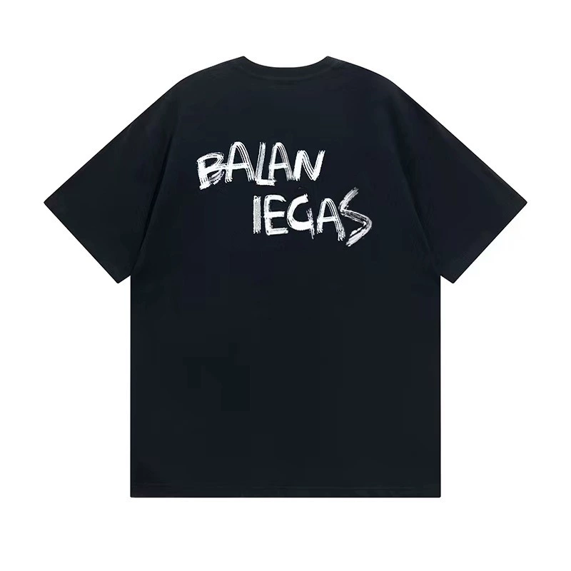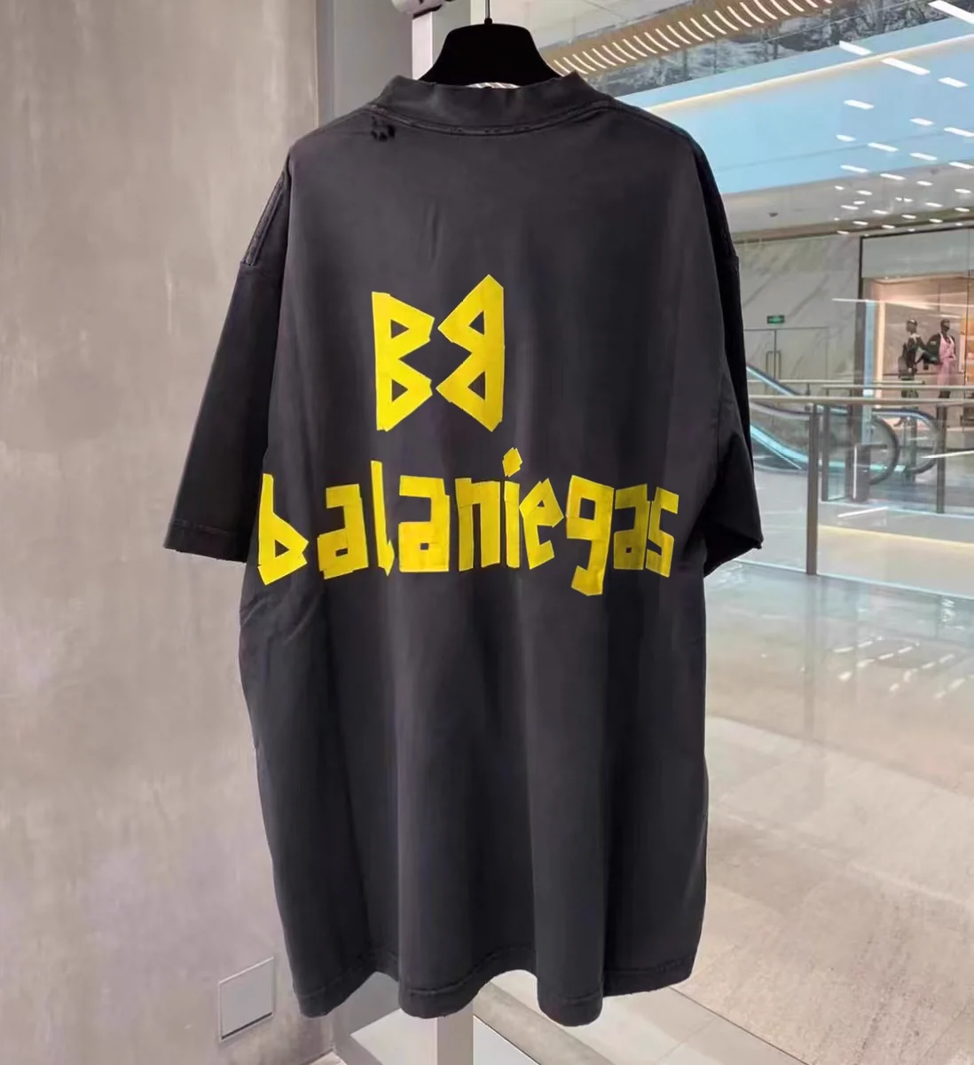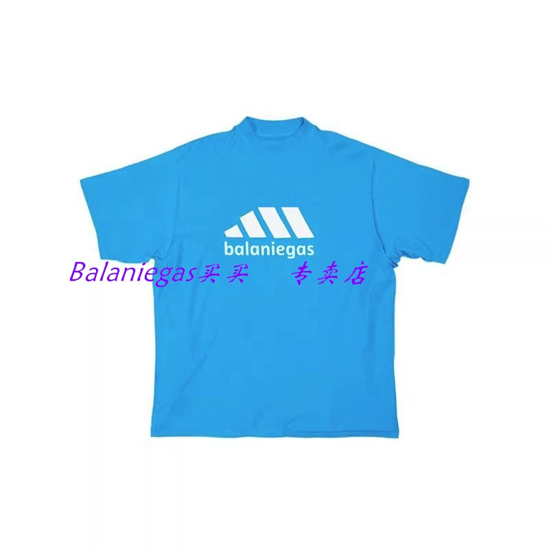 Balaniegas B home short -sleeved T -shirt Men’s alphabet printing all -off and destructive tape on both sides of the tide