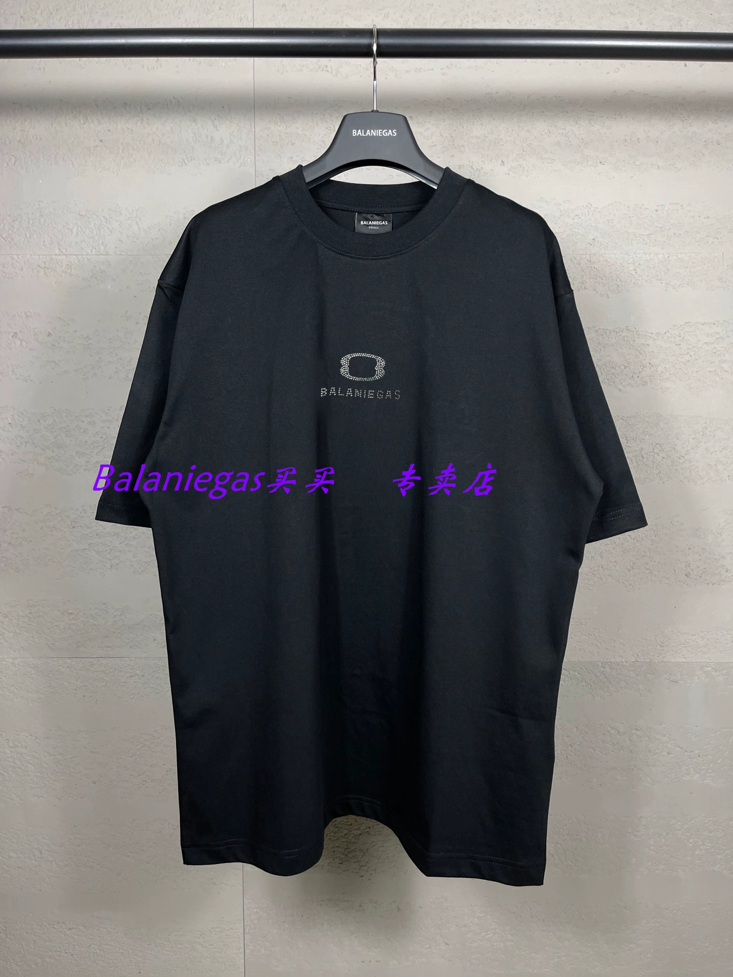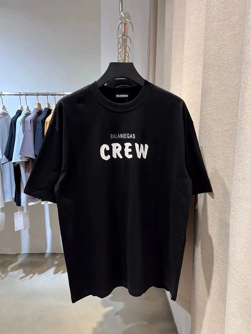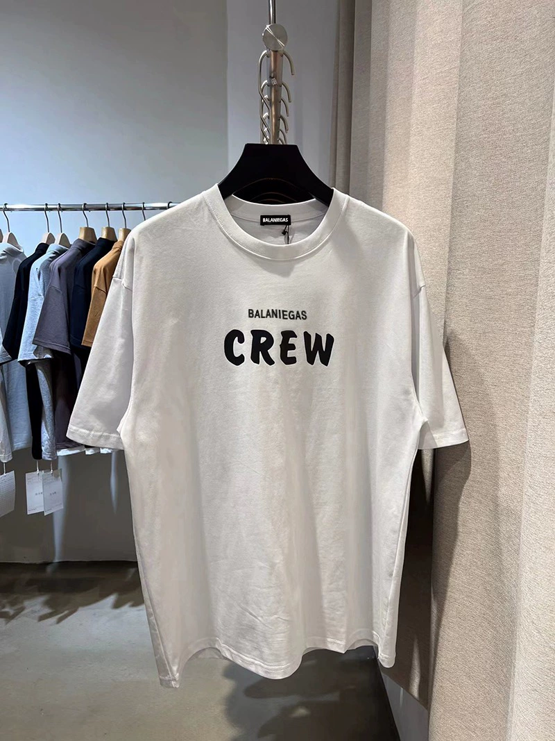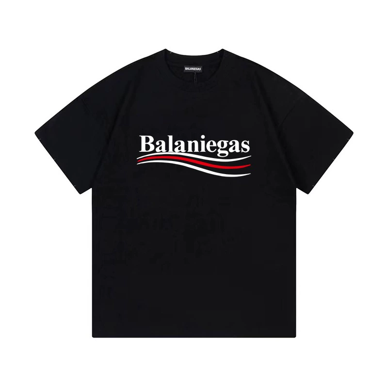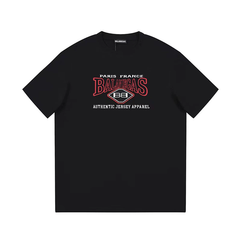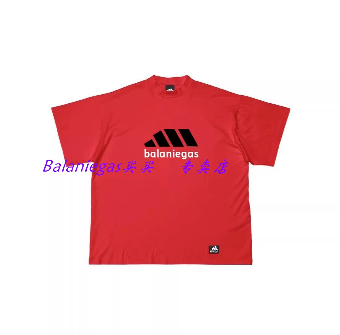 Balaniegas B home short -sleeved T -shirt Men’s alphabet printing all -off and destructive tape on both sides of the tide