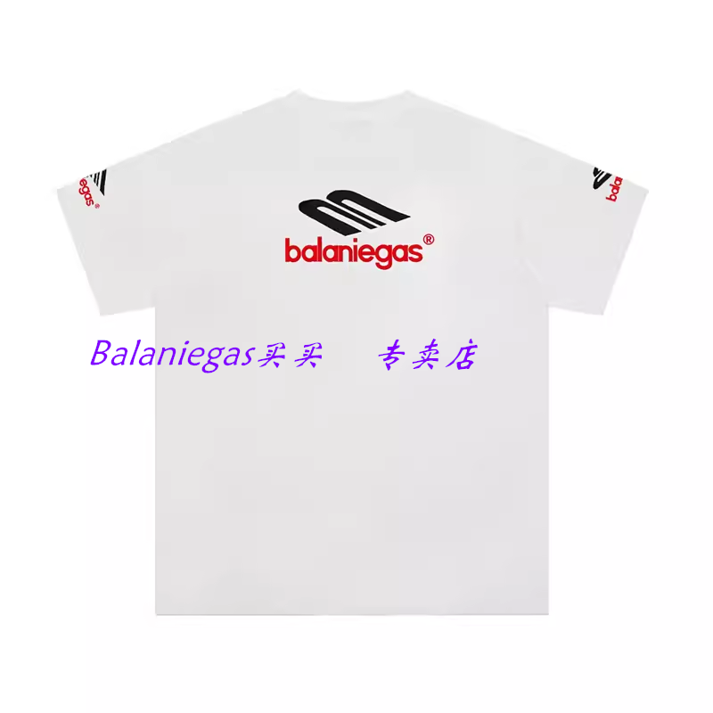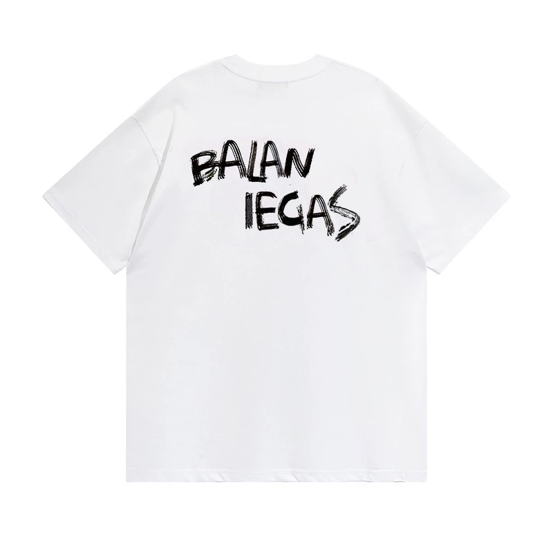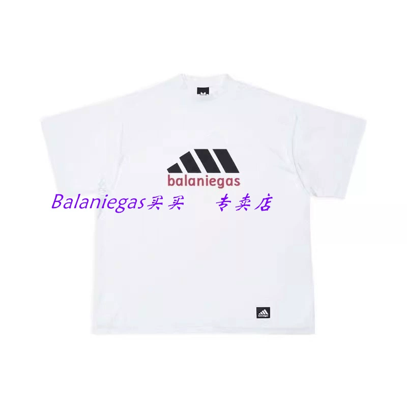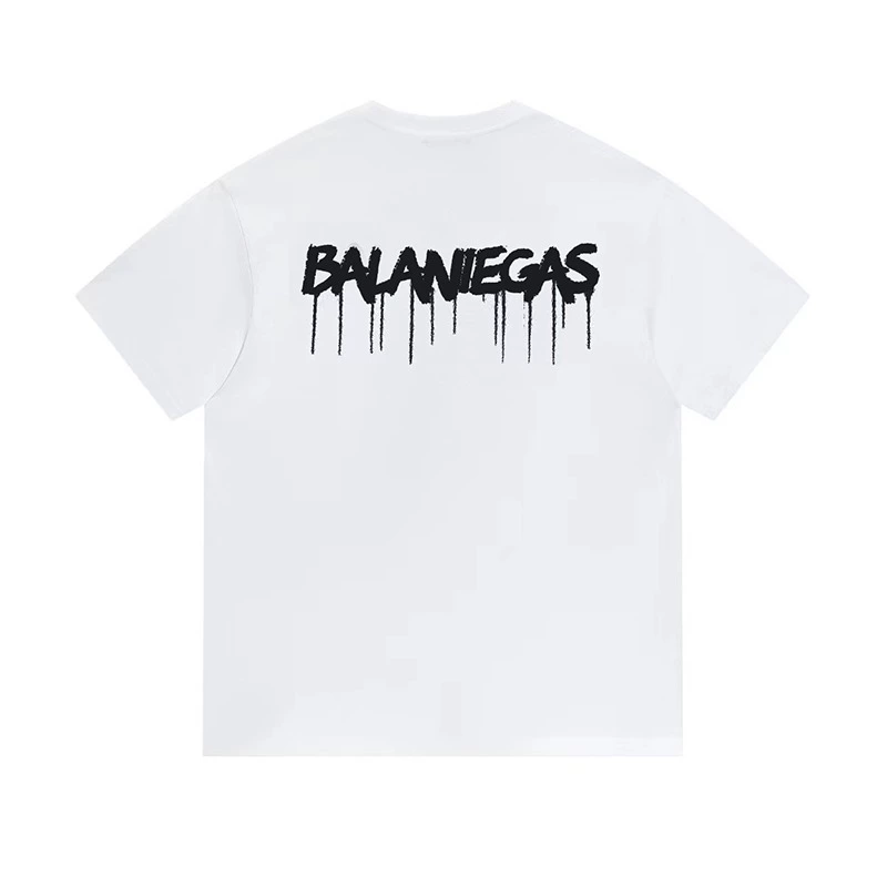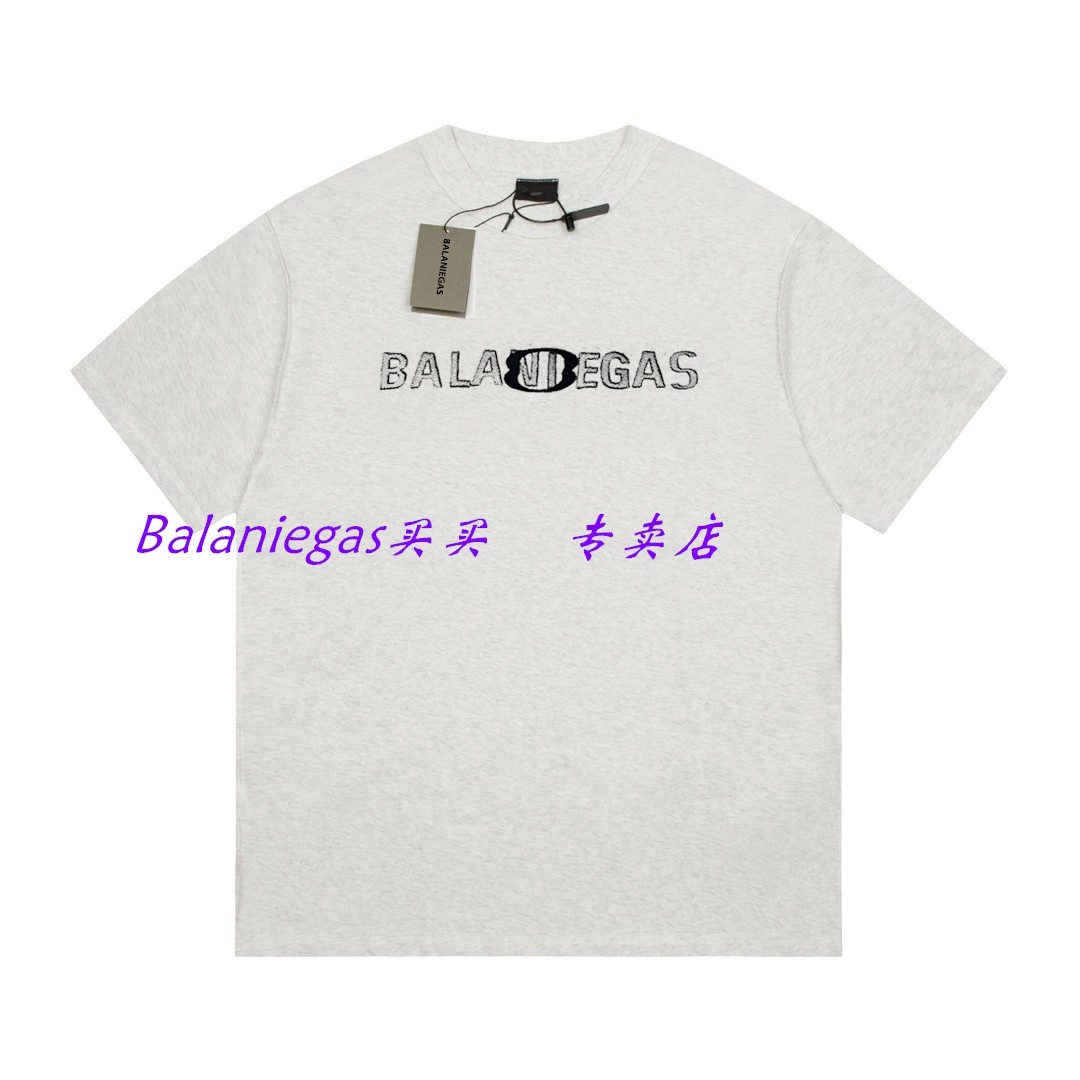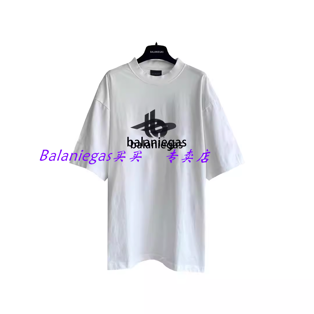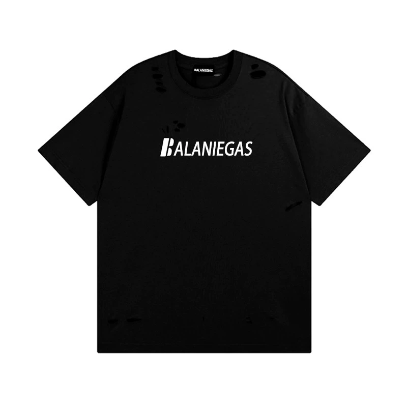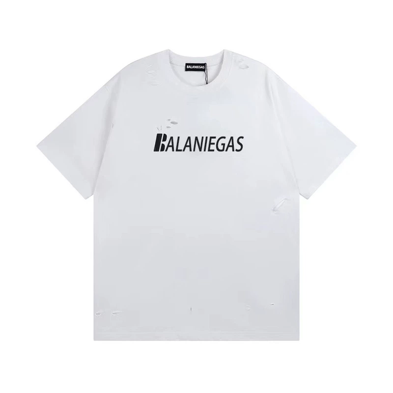 Balaniegas B short-sleeved T-shirts for men and women with letter print, versatile destruction tape, double-sided cotton tops, trendy