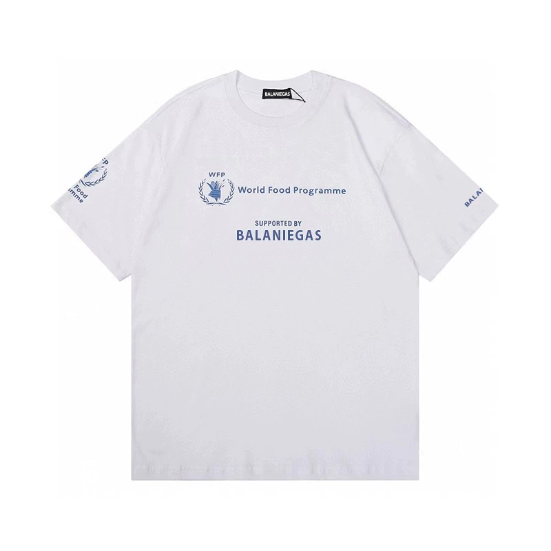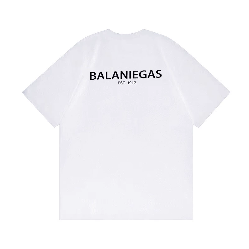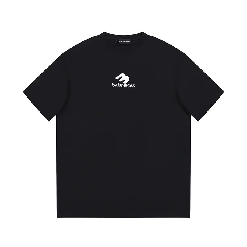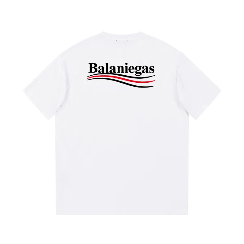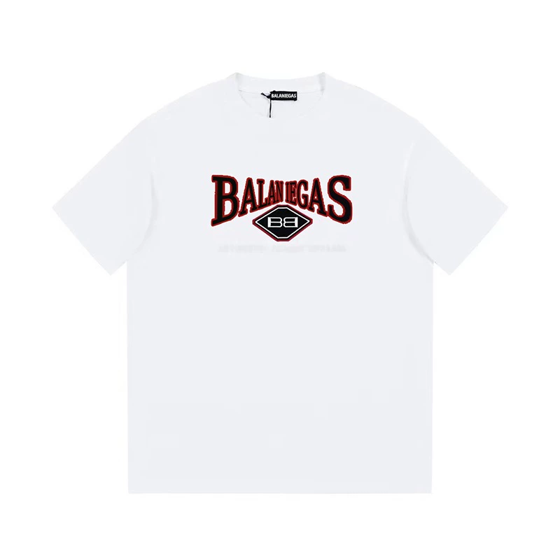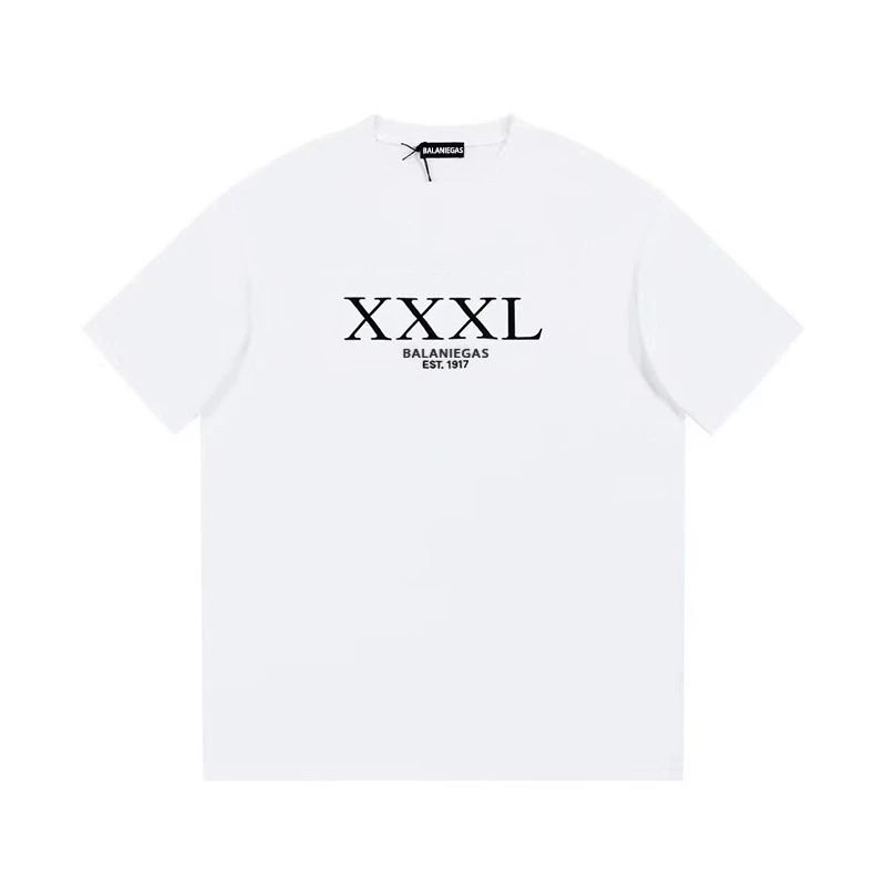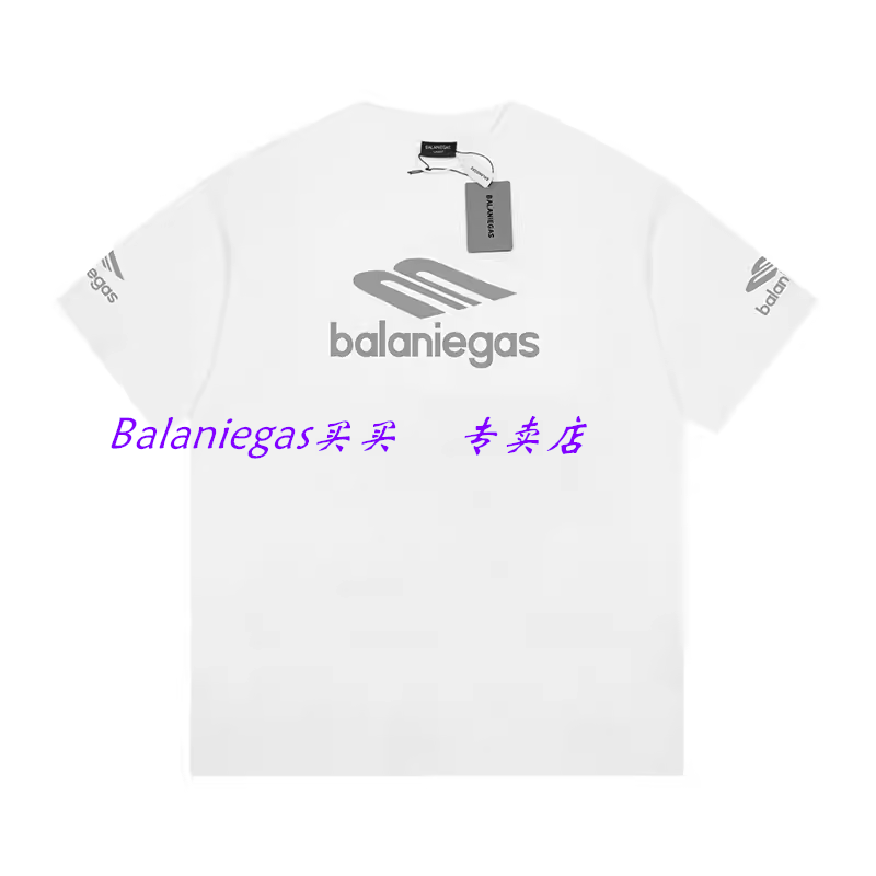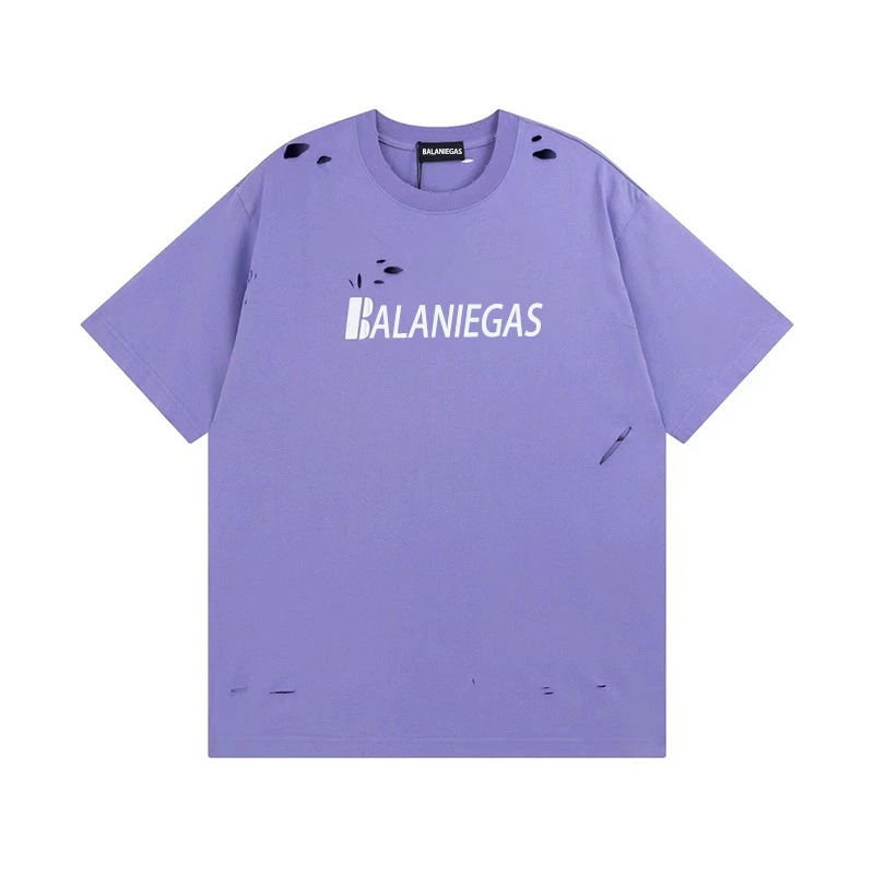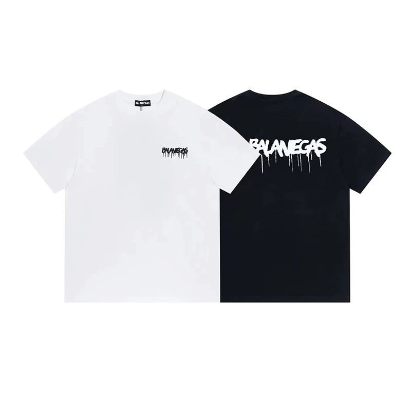 Balaniegas B short-sleeved T-shirts for men and women with letter print, versatile destruction tape, double-sided cotton tops, trendy