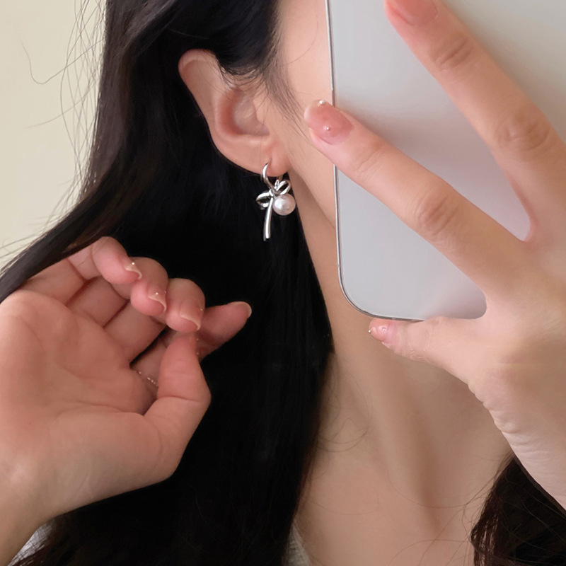 Ballet Girl Bow Pearl Ear Buckle Light Luxury High-end Niche Design Earrings Elegant Gentle New Earrings