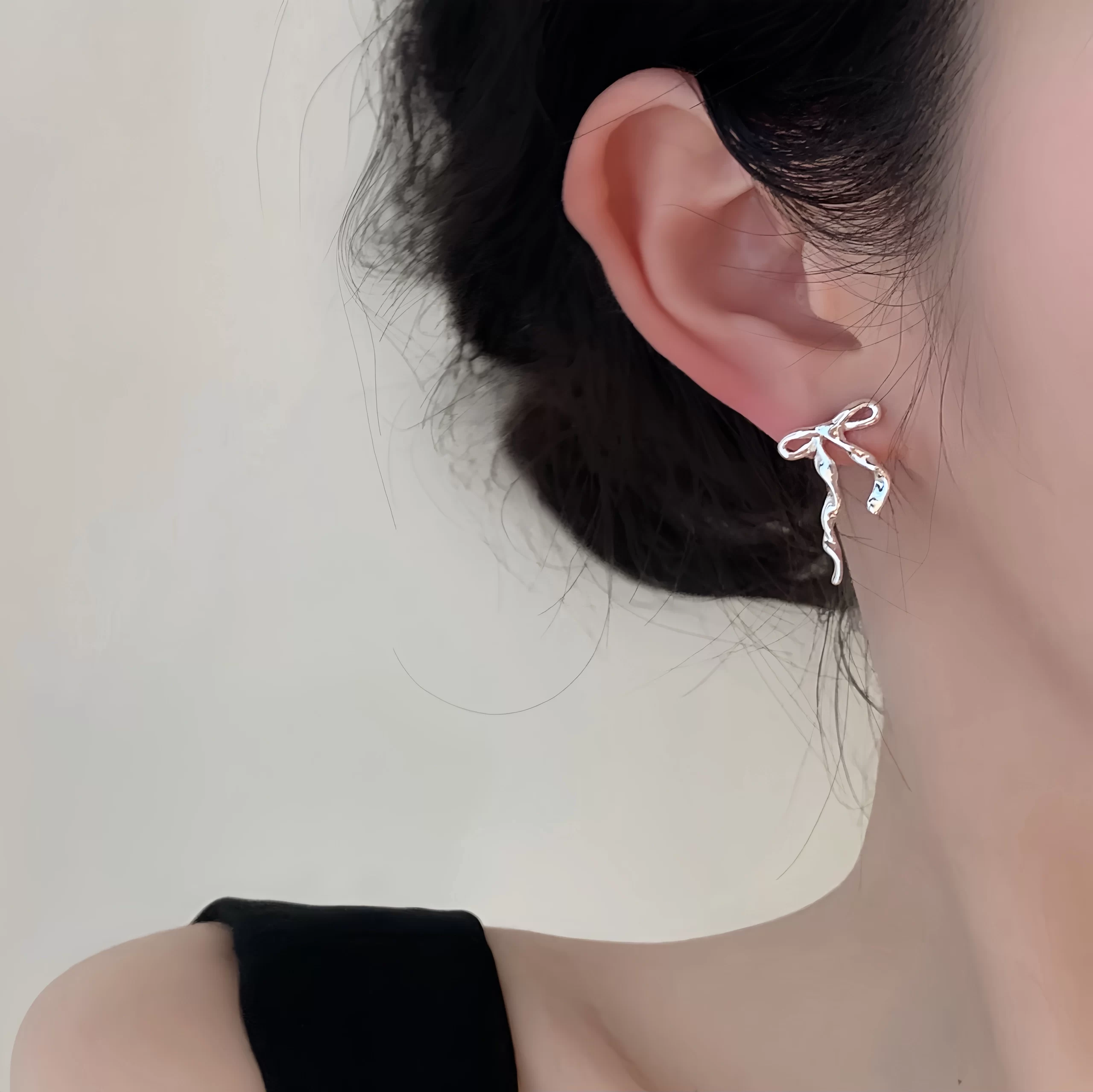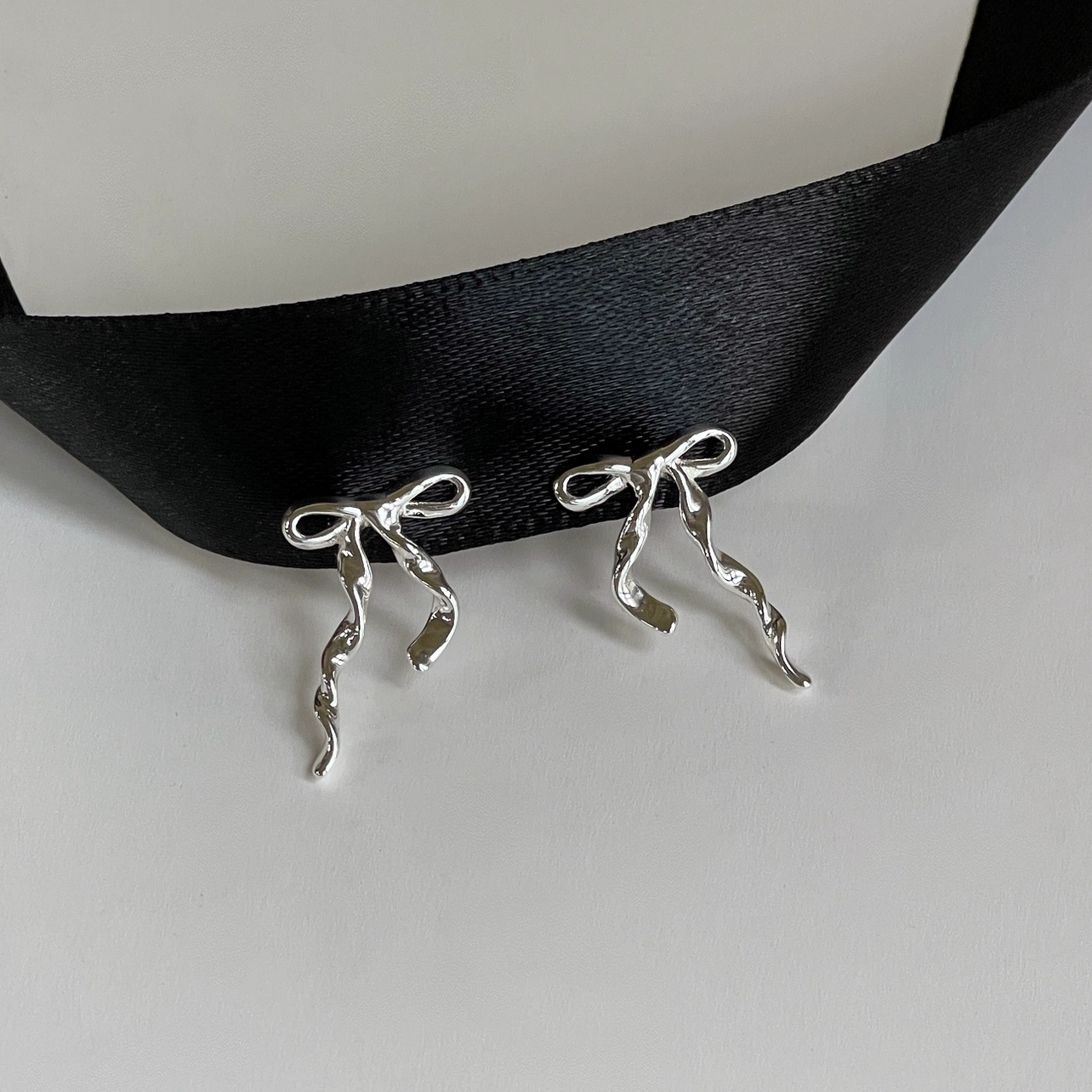 | nameOriginal | "Ballet Past" Ballet Style Ribbon Bow Earrings Mosquito Coil Disc Ear Clips Women's No-Ear Pierced Style Earrings Silver |