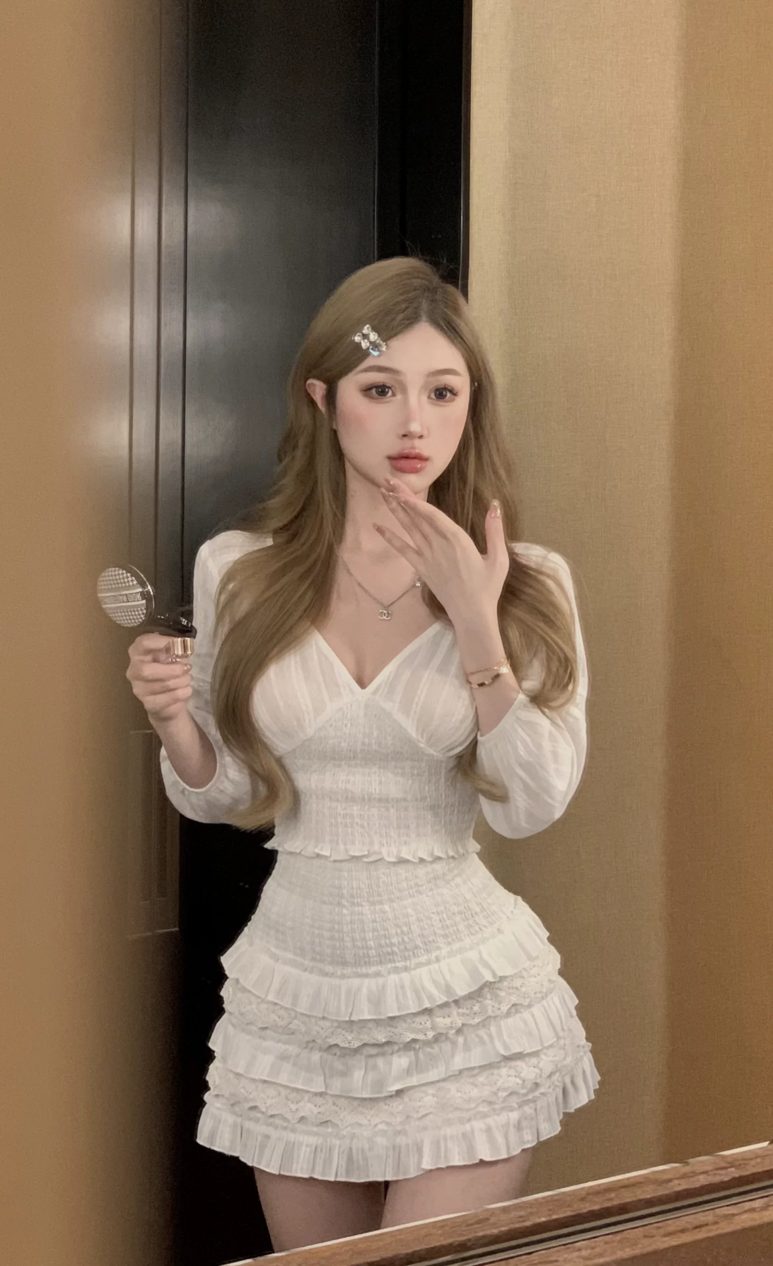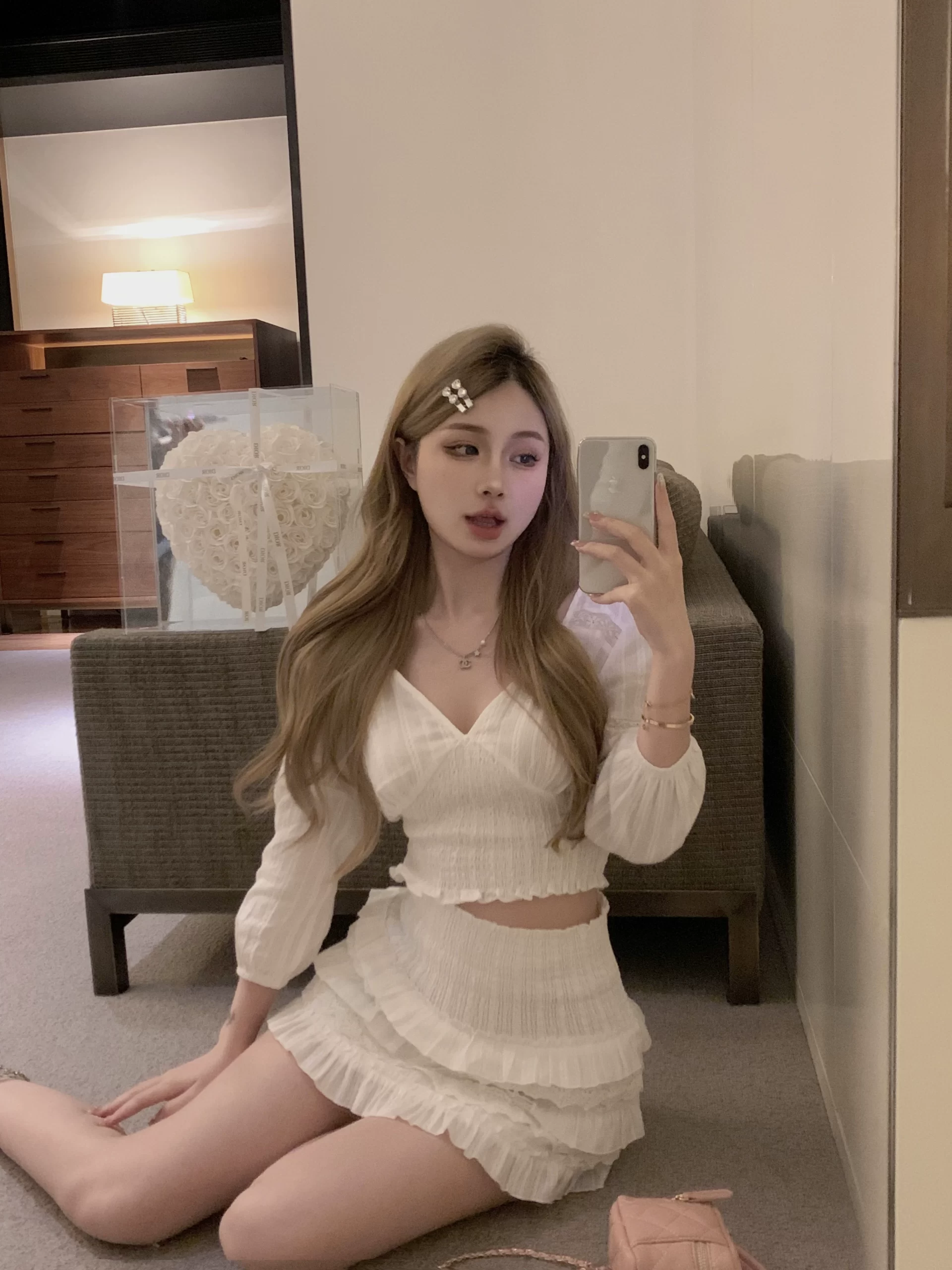 | nameOriginal | Ballet style fashion suit for women summer 2024 new embroidered V-neck top lace splicing cake skirt two-piece set |