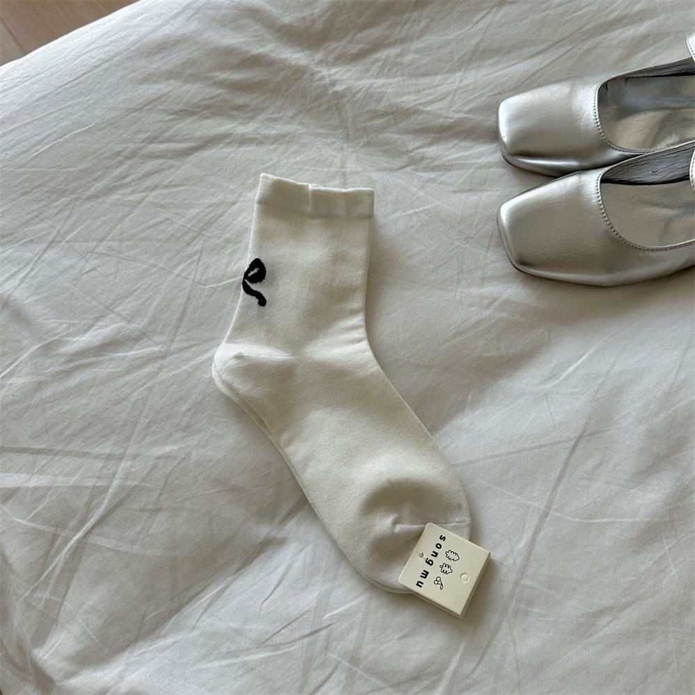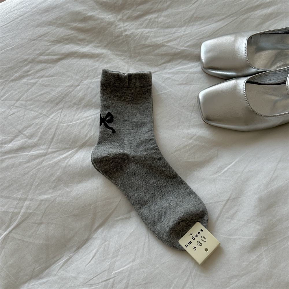 | nameOriginal | Ballet style gray heel bow pile socks for women spring and summer new ins trendy Japanese solid color mid-tube cotton socks |