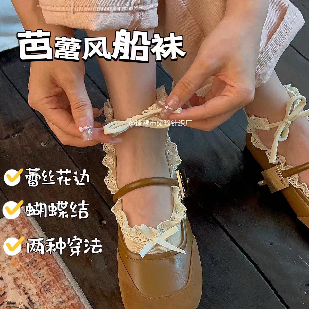 | nameOriginal | Ballet style strap boat socks lace bow spring and summer thin invisible socks with shallow shoes |