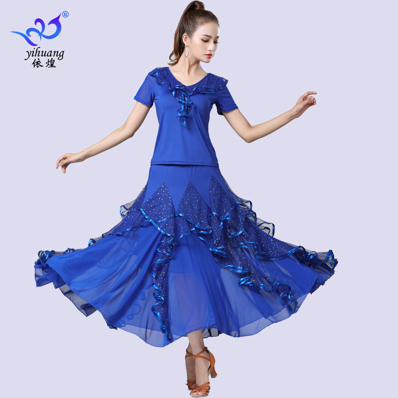 | nameOriginal | Ballroom Dance Suit Practice Skirt High Waist Large Swing Skirt Ballroom Dance Dress Set Square Dance Performance Suit Sequin Long Skirt |