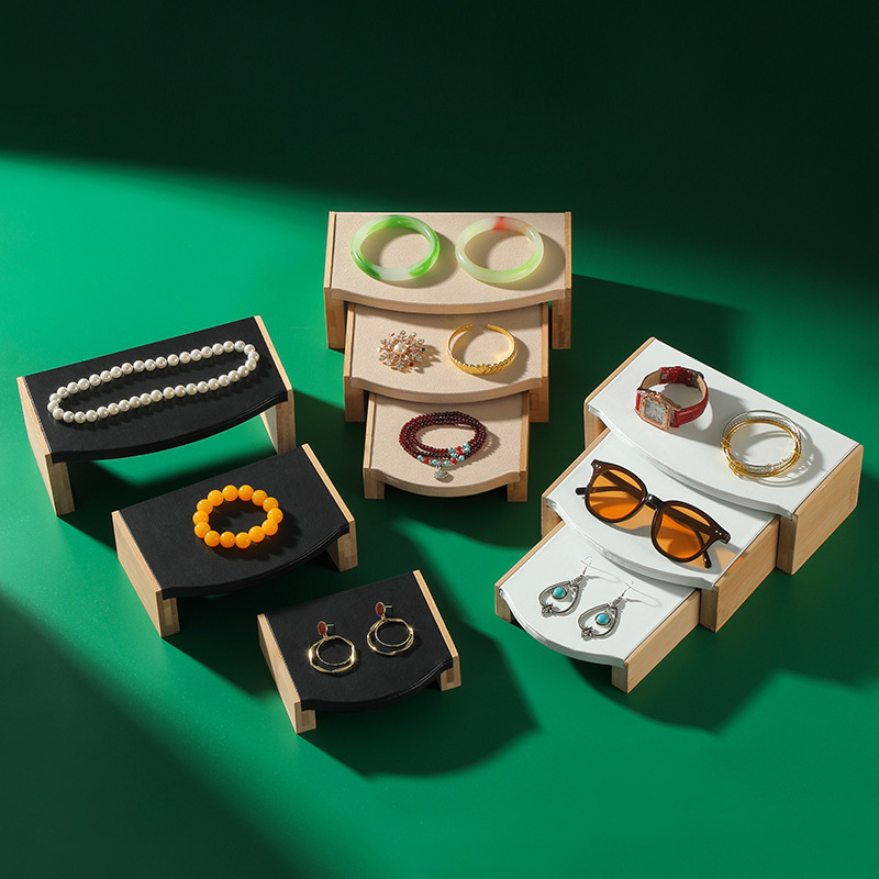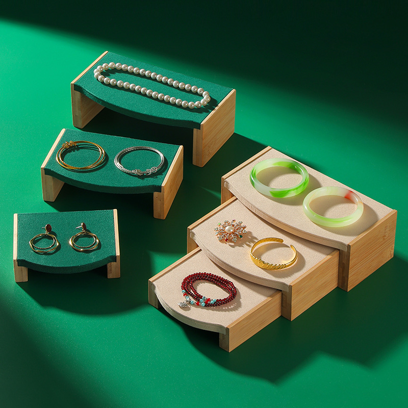 Bamboo and Wood three-piece jewelry display stand ladder jewelry display stand multifunctional jewelry storage display props