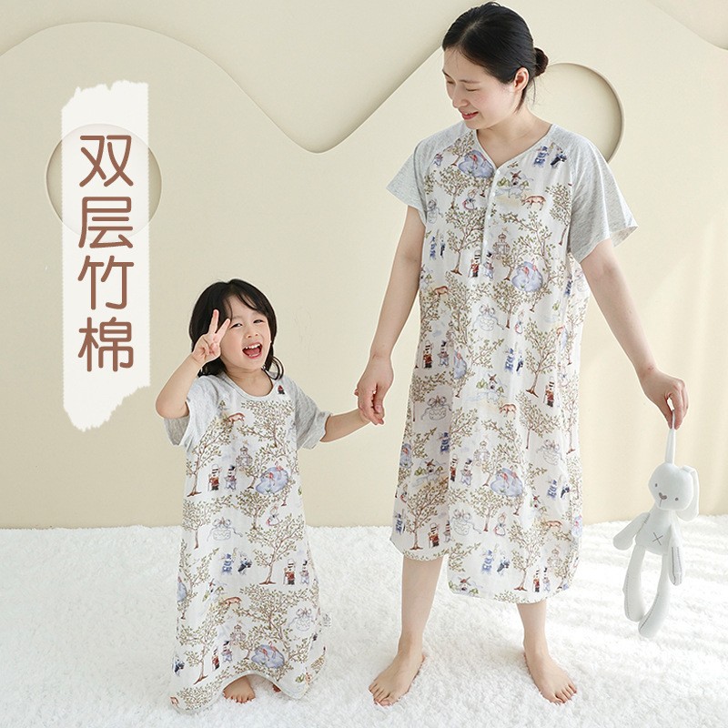 | nameOriginal | Bamboo Cotton Gauze Baby Pajamas Family Clothes Home Clothes Children's Short-sleeved Sleeping Bag Baby Class A Summer Mother's Nightgown |