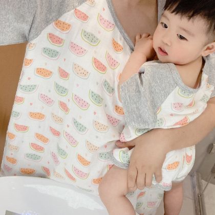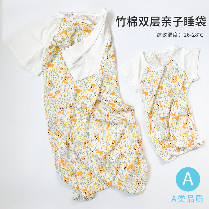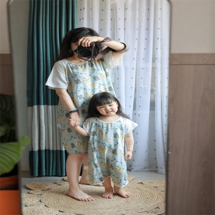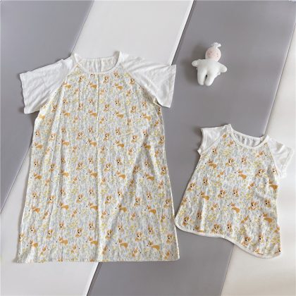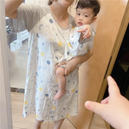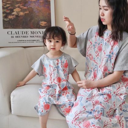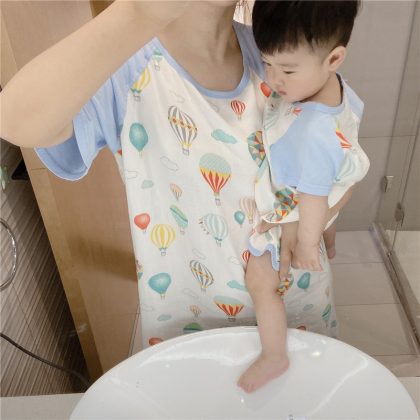 Bamboo Cotton Pajamas Lightweight Bamboo Cotton Parent-Child Pajamas Baby Pajamas Mother Nightdress Home Clothes Parent-Child Clothes