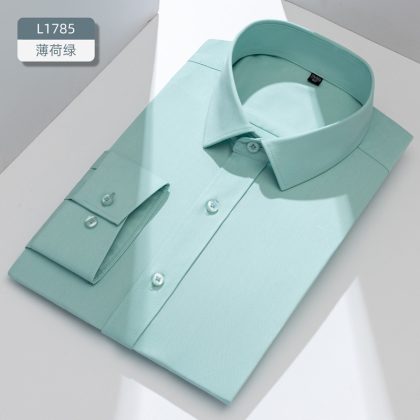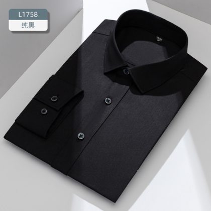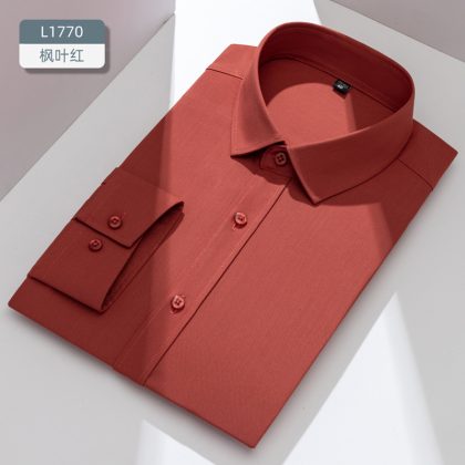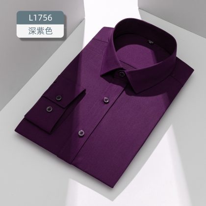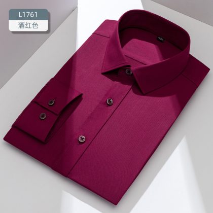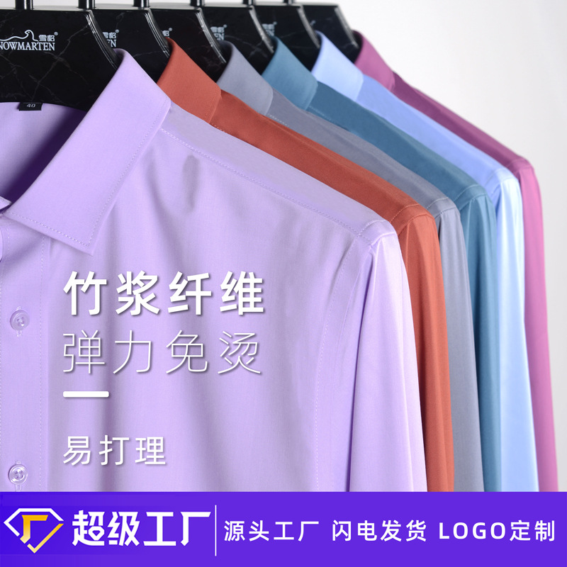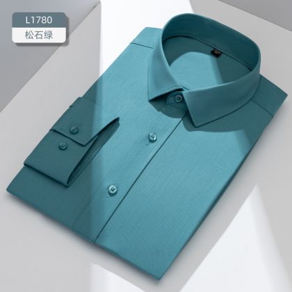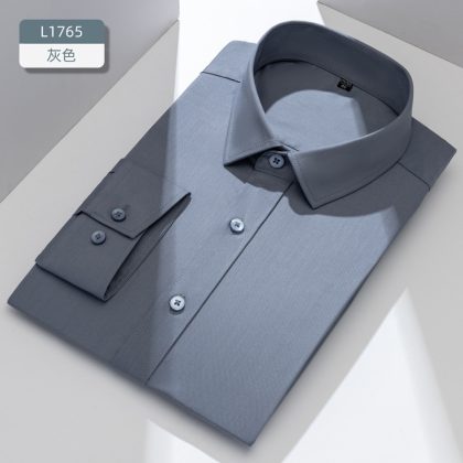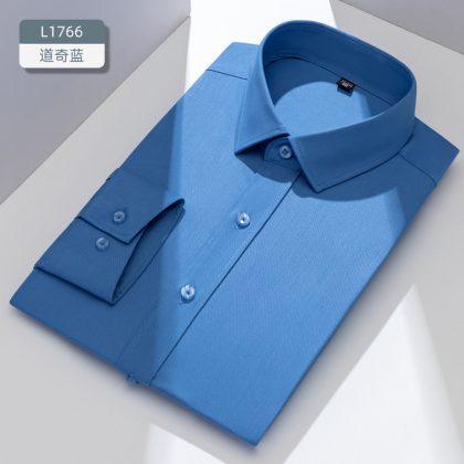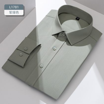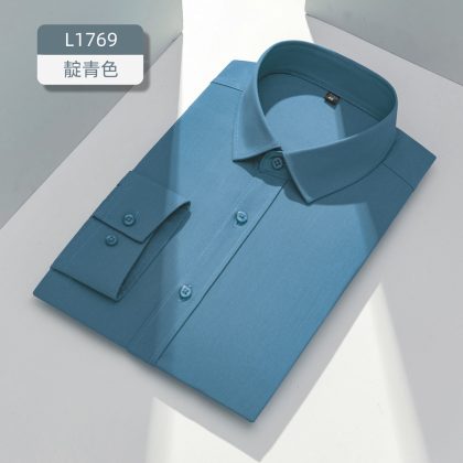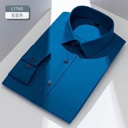 Bamboo Fiber Non-iron Shirt Men’s Long-sleeved Elastic Slim-fit Anti-wrinkle Business Work Clothes Workwear Solid Color Shirt Men’s