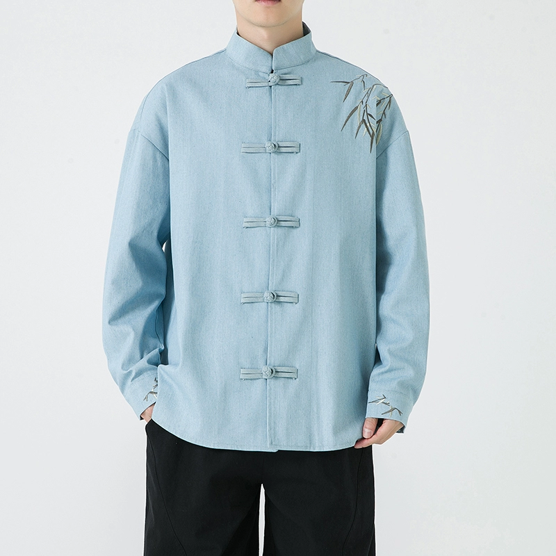 | nameOriginal | Bamboo Leaf Long Sleeve Denim Spring Clothes Chinese Style Disc Button Embroidery |