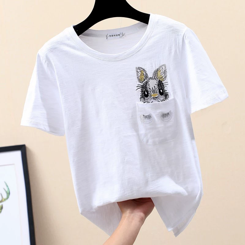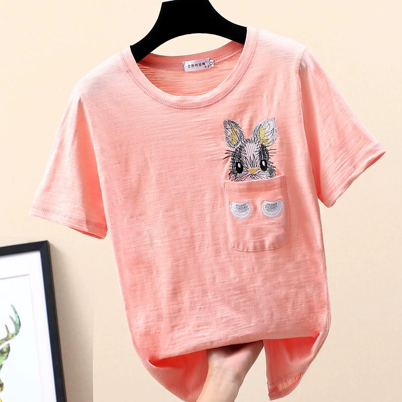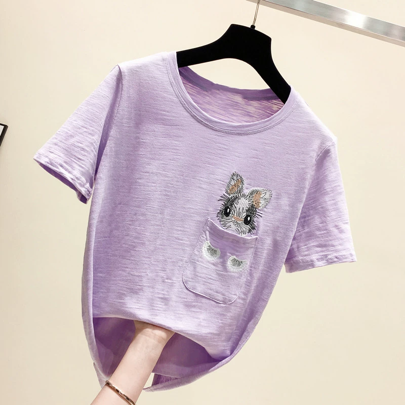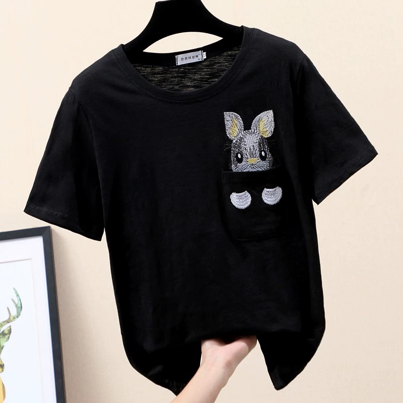 | nameOriginal | Bamboo loose simple half-sleeved top with rabbit embroidery |