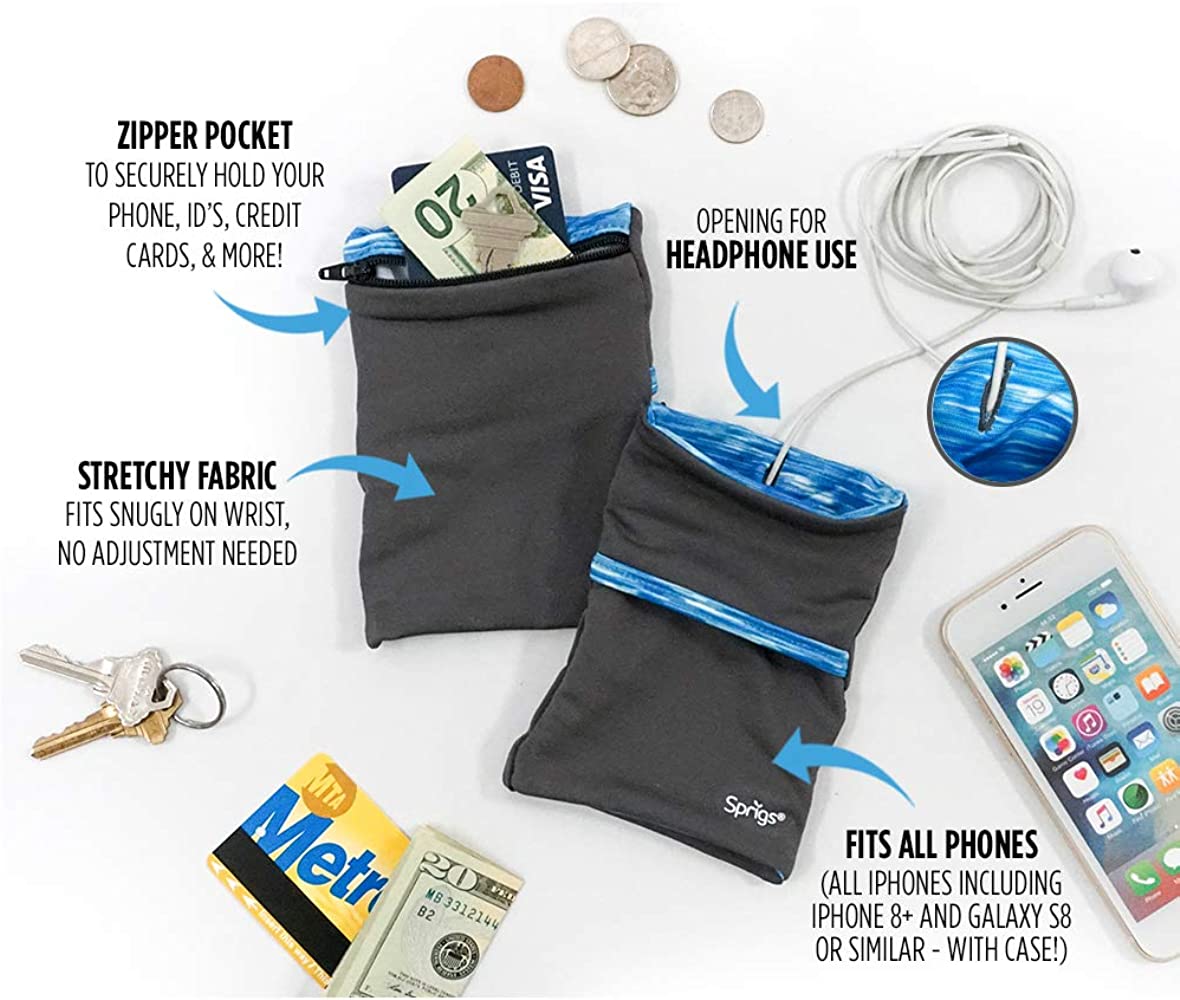 Sprigs Banjees 2 Pocket Wrist Wallet/Wrist Band/Wrist Pocket for Travel, Walking, & Running. Wallet Pouch That Holds Cash, Card, ID's, and More