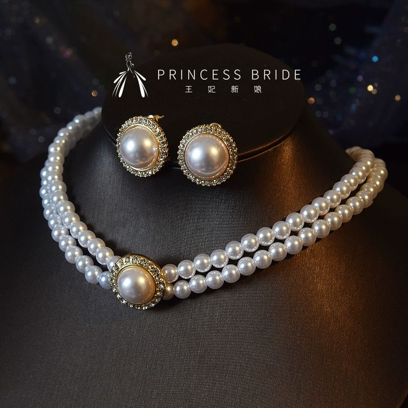 | nameOriginal | Banquet female bride wedding dress earrings pearl necklace |