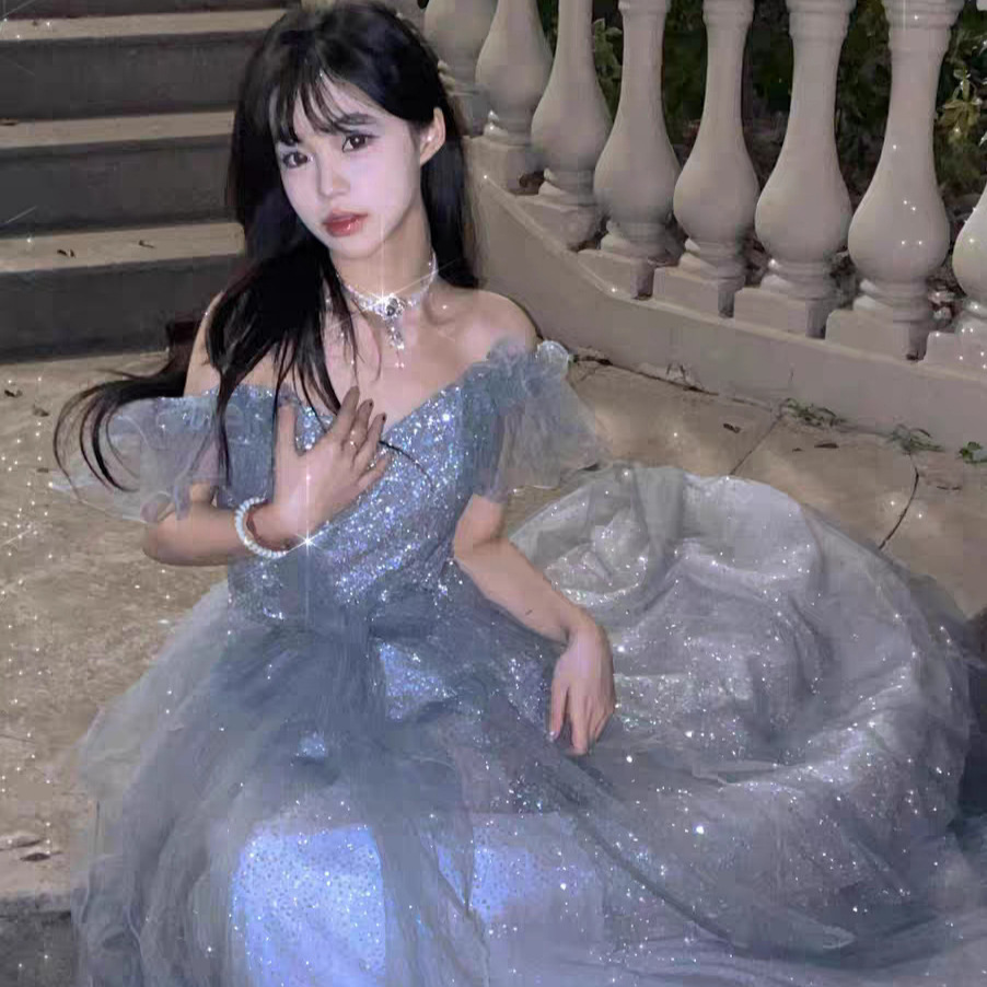 | nameOriginal | Banquet Heavy Industry Blue Evening Dress High-grade 2024 New Niche Adult Ceremony Host Dress |
