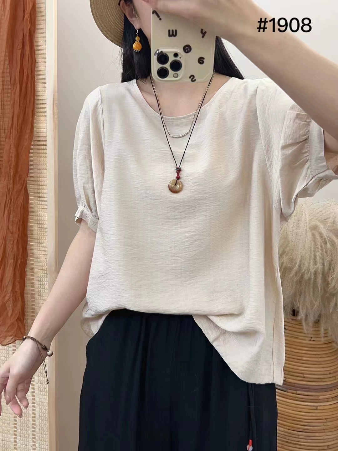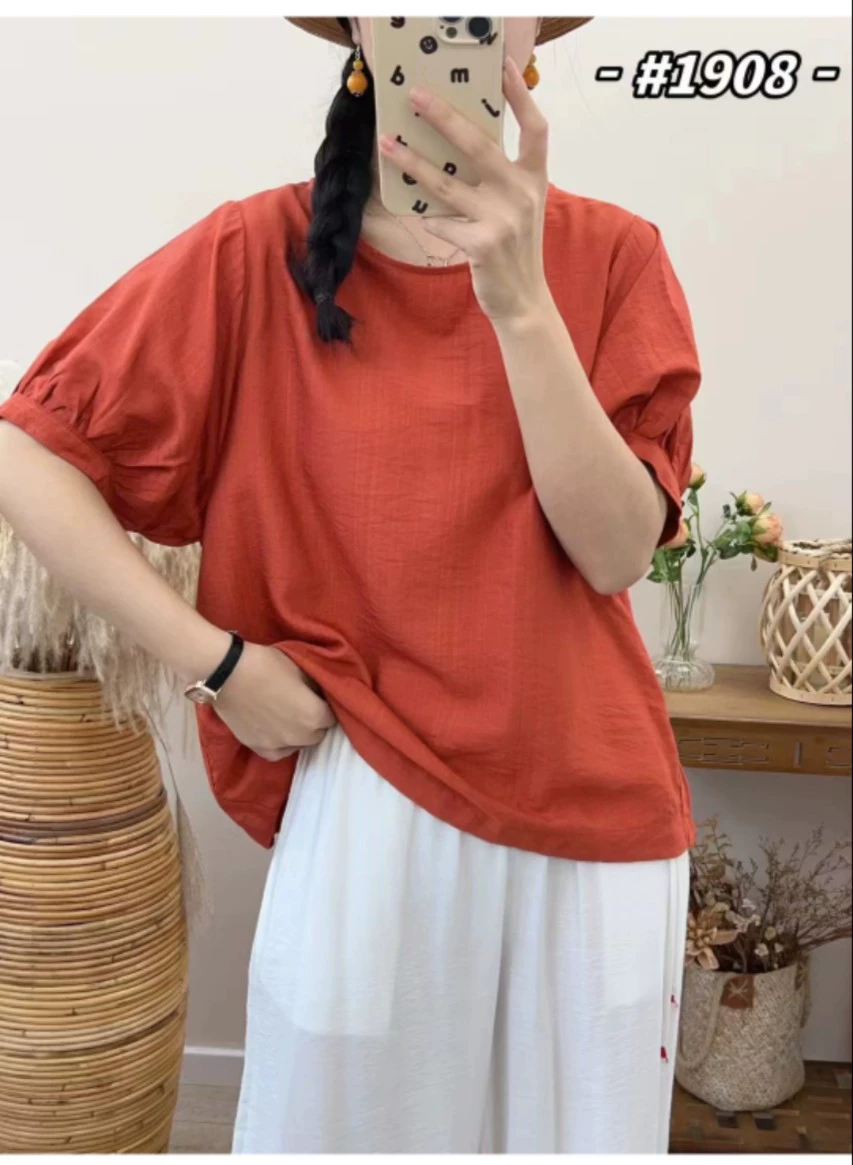 Banxiang summer new style 2024 round neck versatile women’s TS short-sleeved tops T-shirt pullover lantern sleeve bottoming shirt