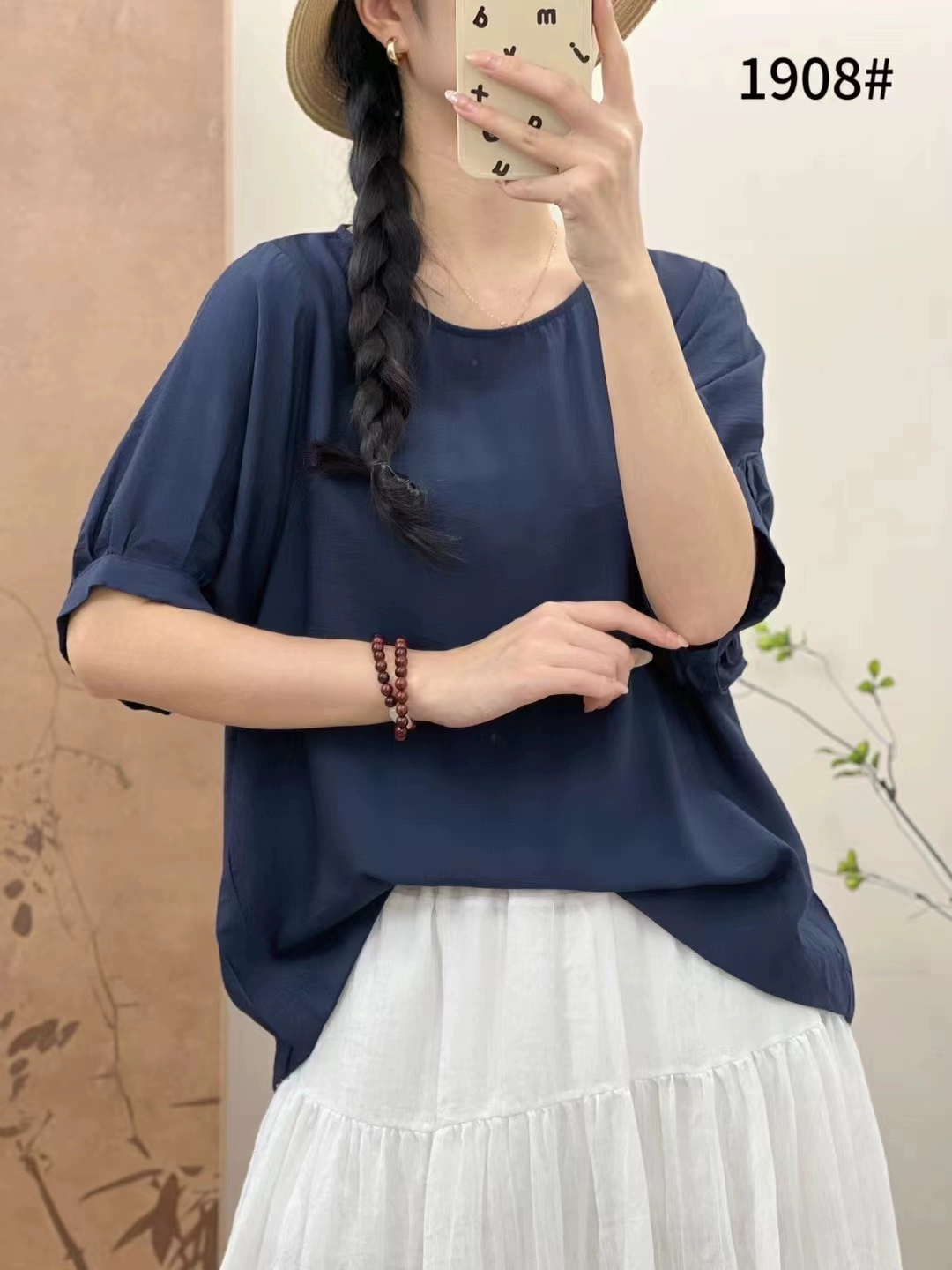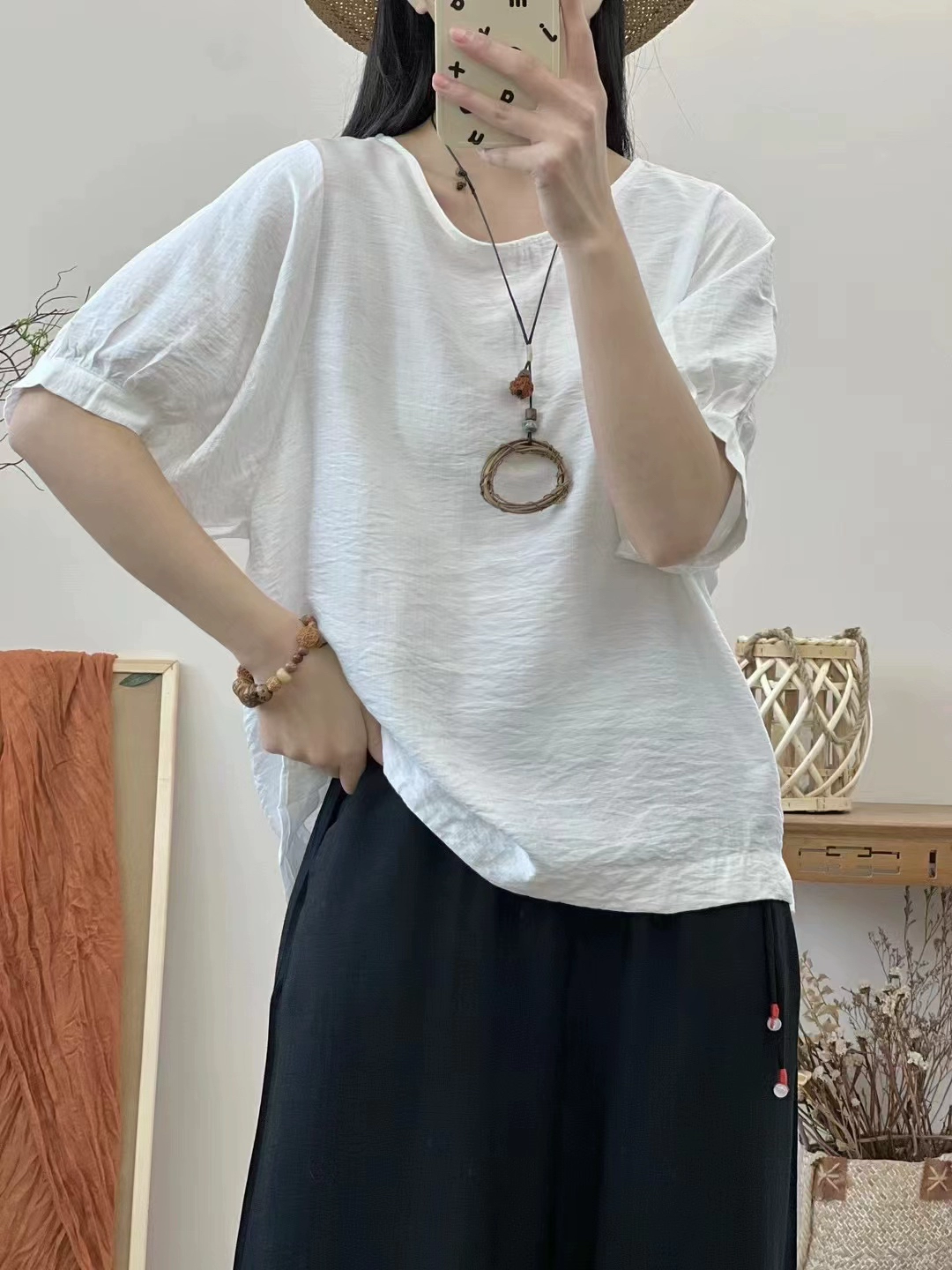 Banxiang summer new style 2024 round neck versatile women's TS short-sleeved tops T-shirt pullover lantern sleeve bottoming shirt