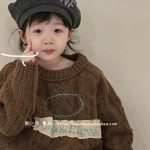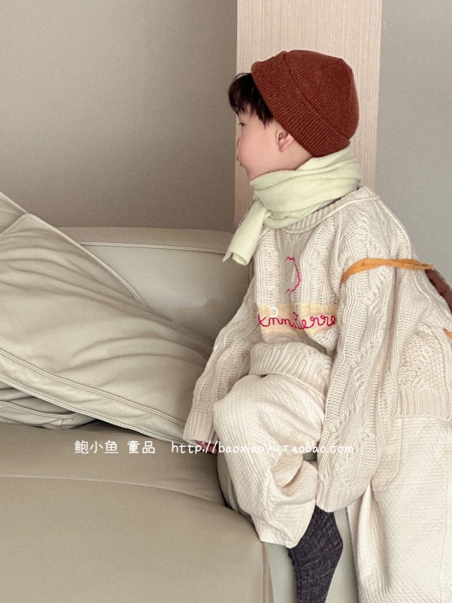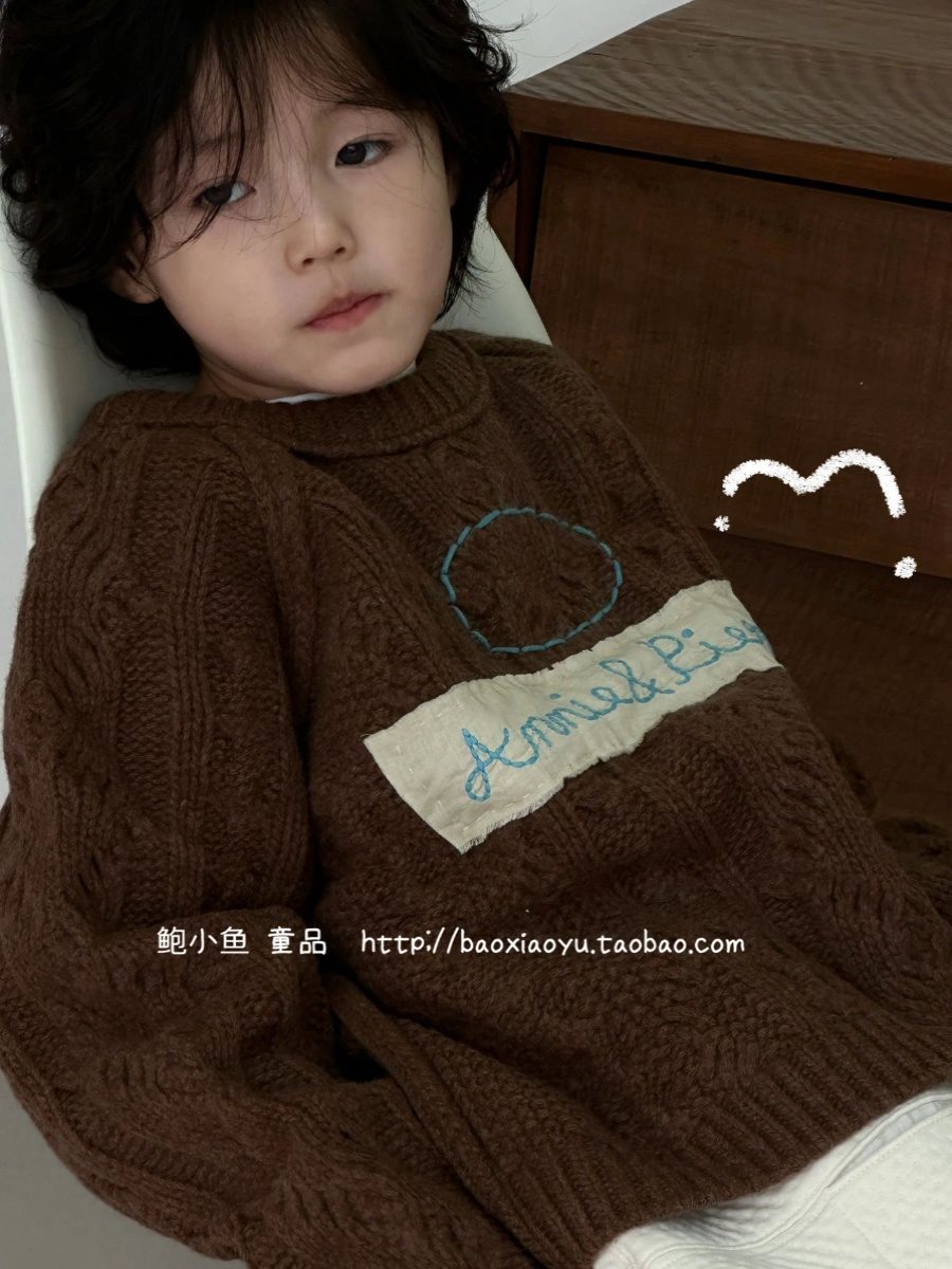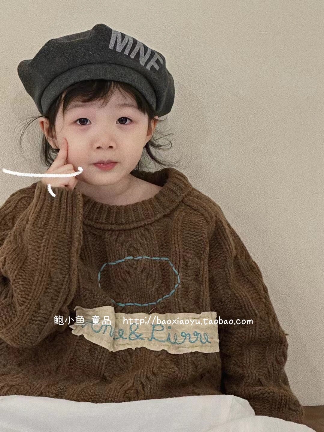 Bao Xiaoyu 2023 autumn and winter New South Korea children’s clothing ins children’s vintage patch letter embroidery thickened twist sweater