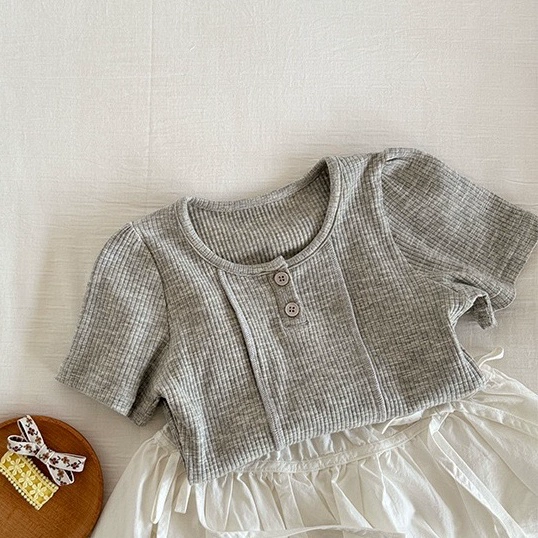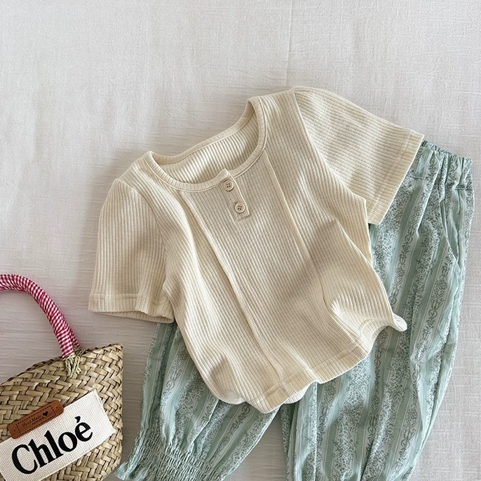 | nameOriginal | Bao Xiaoyu children's clothing summer new basic model for girls simple solid color two-button short-sleeved stretch pit cotton T-shirt |