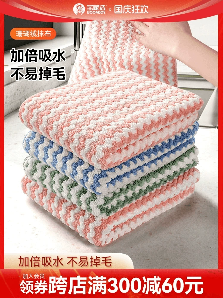 Baojiajie dishwashing cloth, lazy pure cotton fish scale rag, special for kitchen, not easy to shed, strong water absorption, not easy to stick to oil