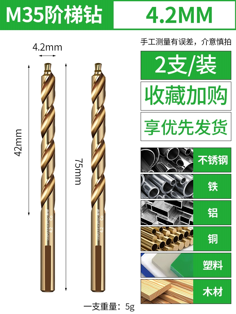 | nameOriginal | Baolian M35 step twist drill bit, cobalt-containing high-hardness stainless steel drill bit, special straight shank drill bit for drilling steel |