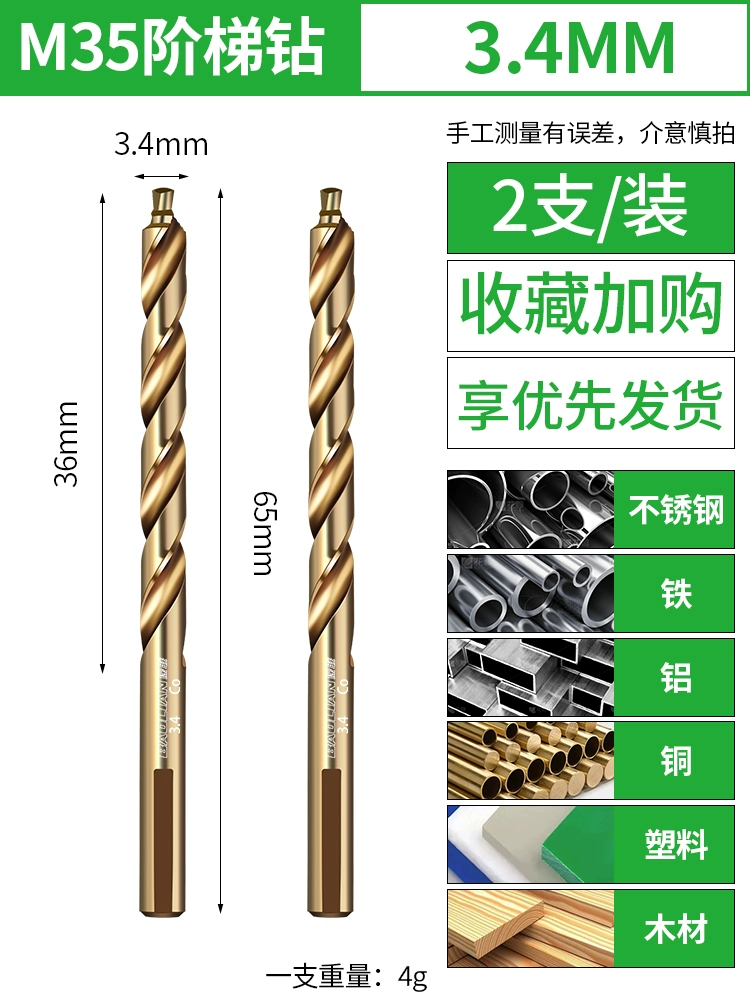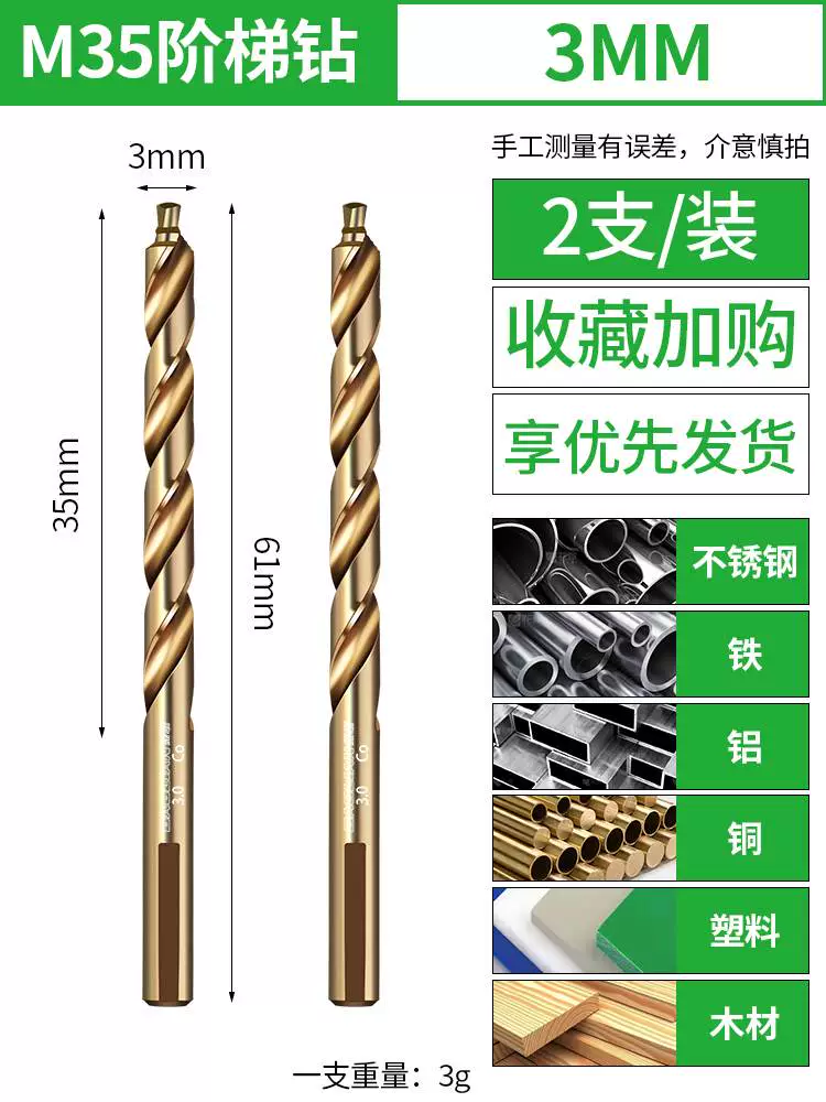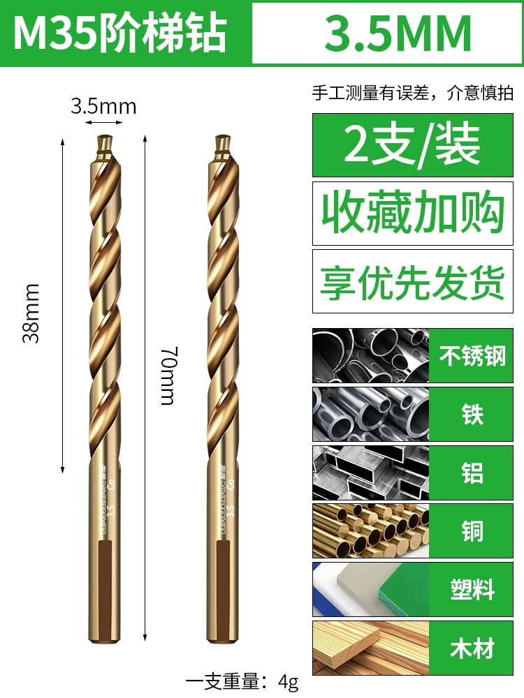 | nameOriginal | Baolian M35 step twist drill bit, cobalt-containing high-hardness stainless steel drill bit, special straight shank drill bit for drilling steel |