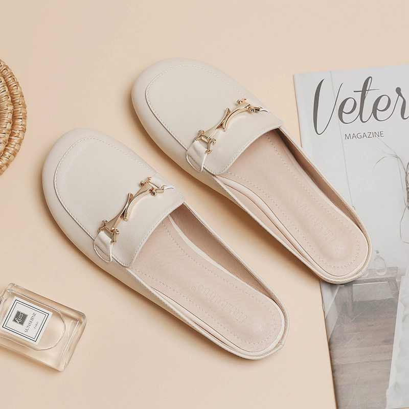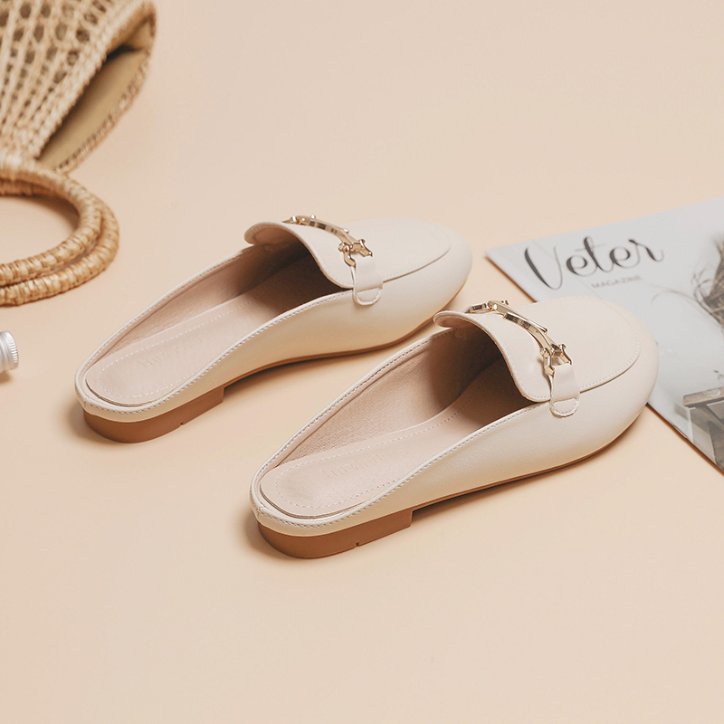 Baotou half slippers for women 2022 spring and summer new heelless lazy genuine leather flat sole outer wear half slippers for women