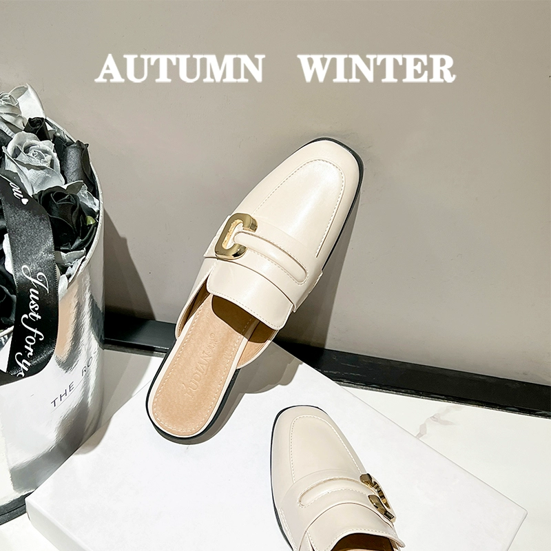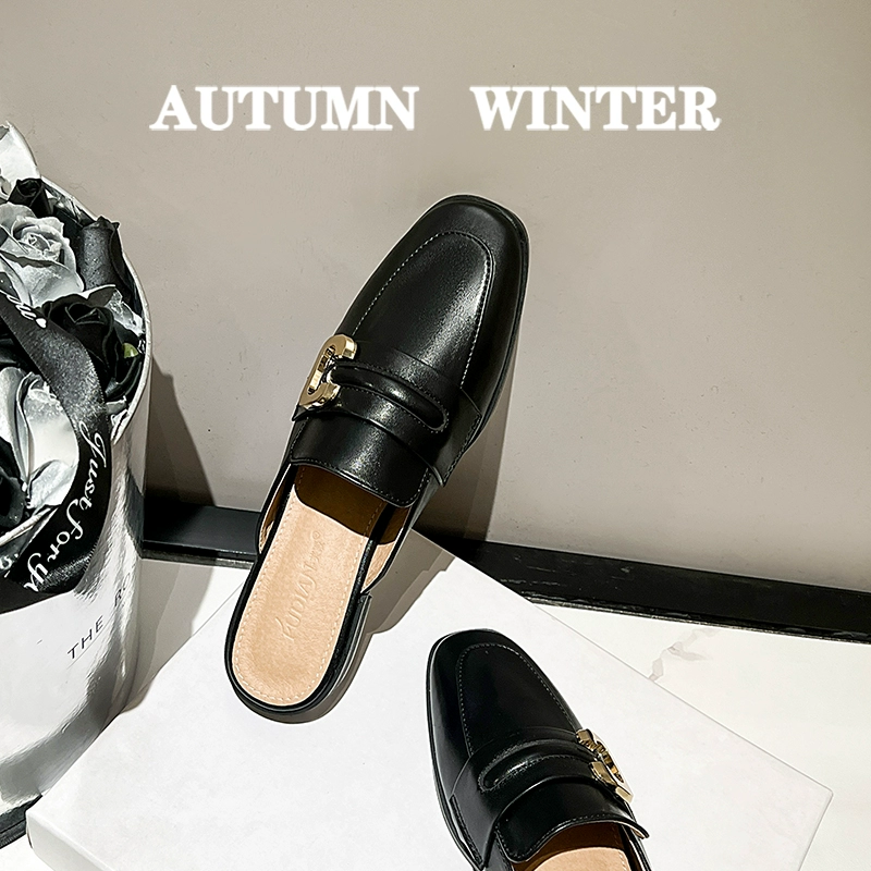 Baotou half slippers for women in summer wear fashionable mules summer flat black half-screw large size women’s shoes 41-43