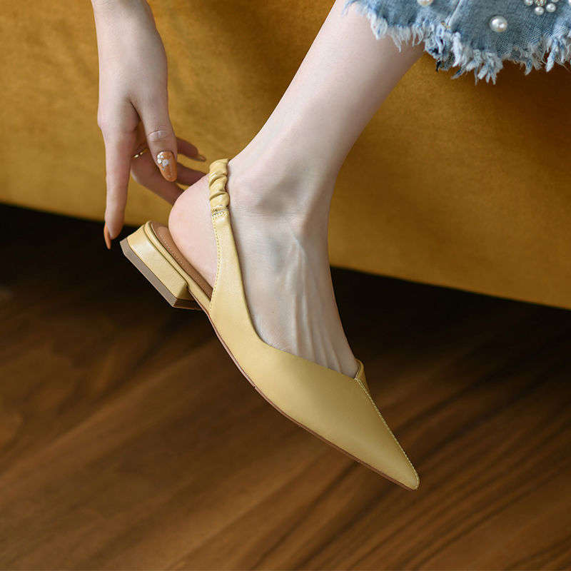 Baotou sandals women's pointed 2024 new low heel spring and summer fairy wind after the empty flat shoes with skirt