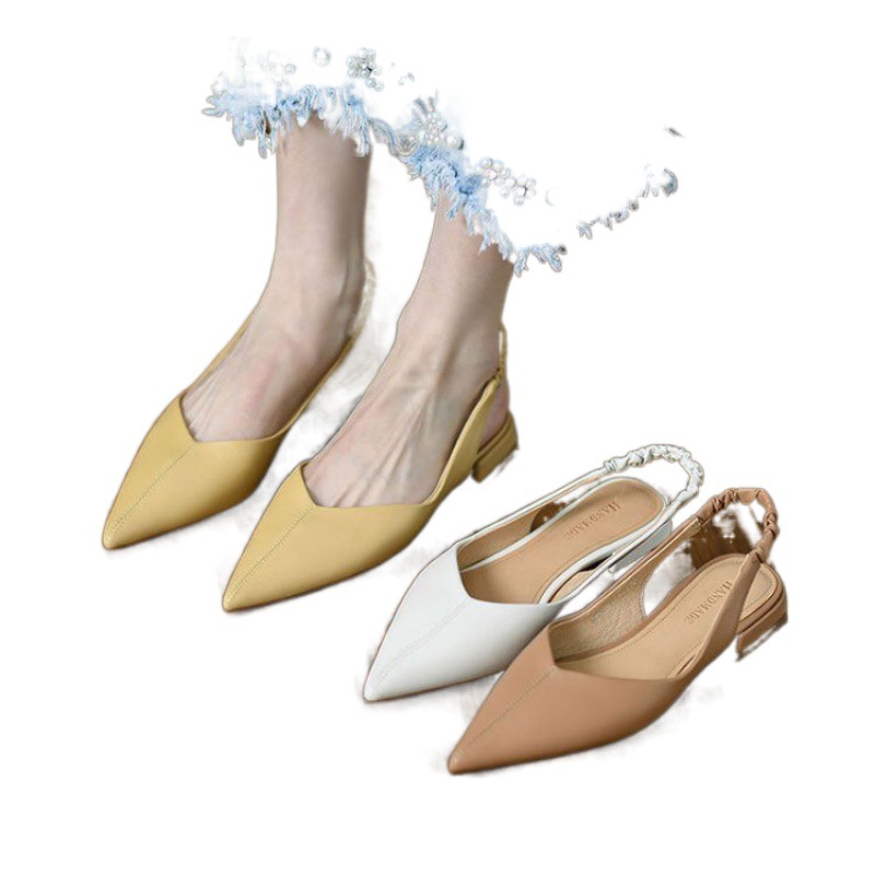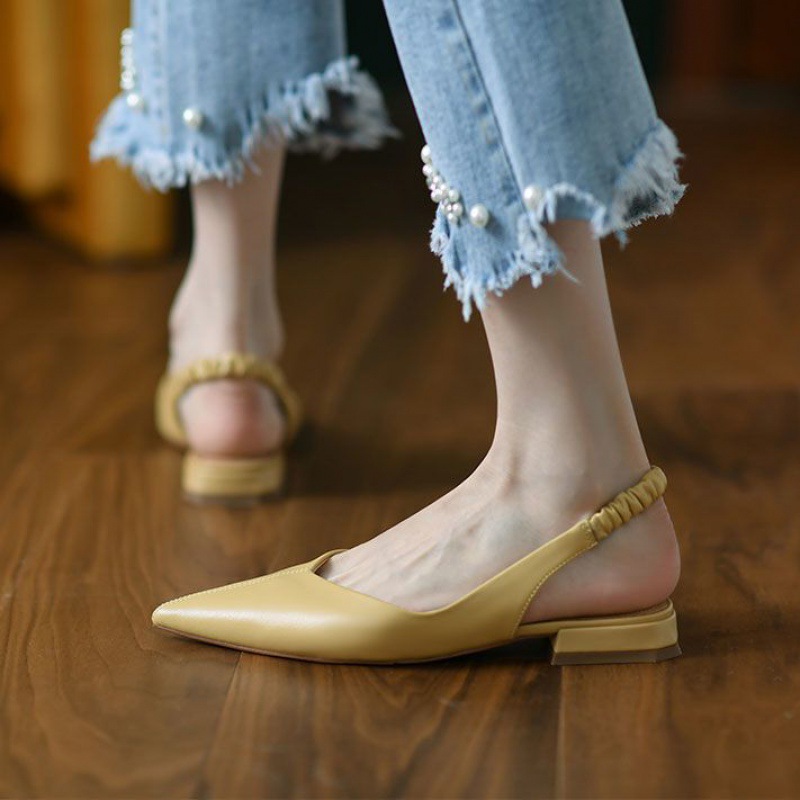 Baotou sandals women’s pointed 2024 new low heel spring and summer fairy wind after the empty flat shoes with skirt