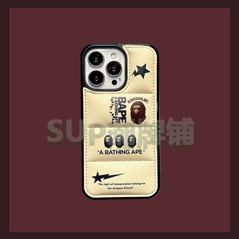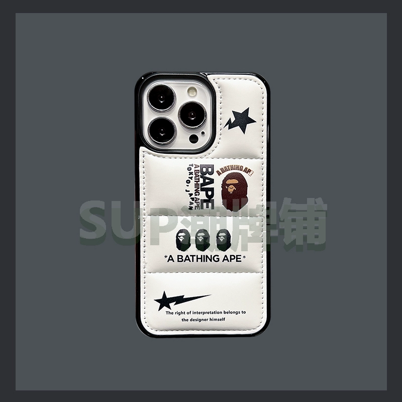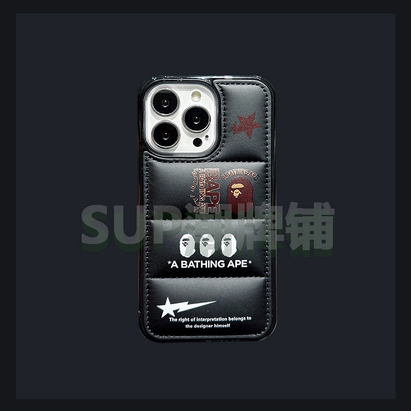 Ape Man BAPE* original ins style black down jacket suitable for iphone15promax Apple 14 niche 13 mobile phone case 12 simple 11 cold couple girl heart male god star vest