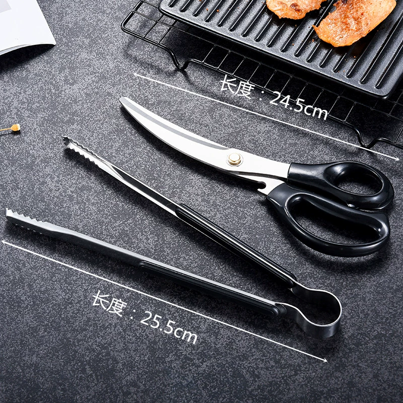 | nameOriginal | Barbecue scissors Korean barbecue scissors clip set stainless steel curved blade cooking scissors restaurant kitchen chicken carving knife |