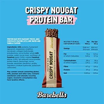 Introducing the new Barebells Crispy Nougat High Protein and Low Carb Bar, the perfect post-workout snack for fitness enthusiasts and health-conscious individuals. Packed with 20g of protein and low in carbs, this protein bar is designed to help you meet your daily protein requirements while keeping your carb intake in check.