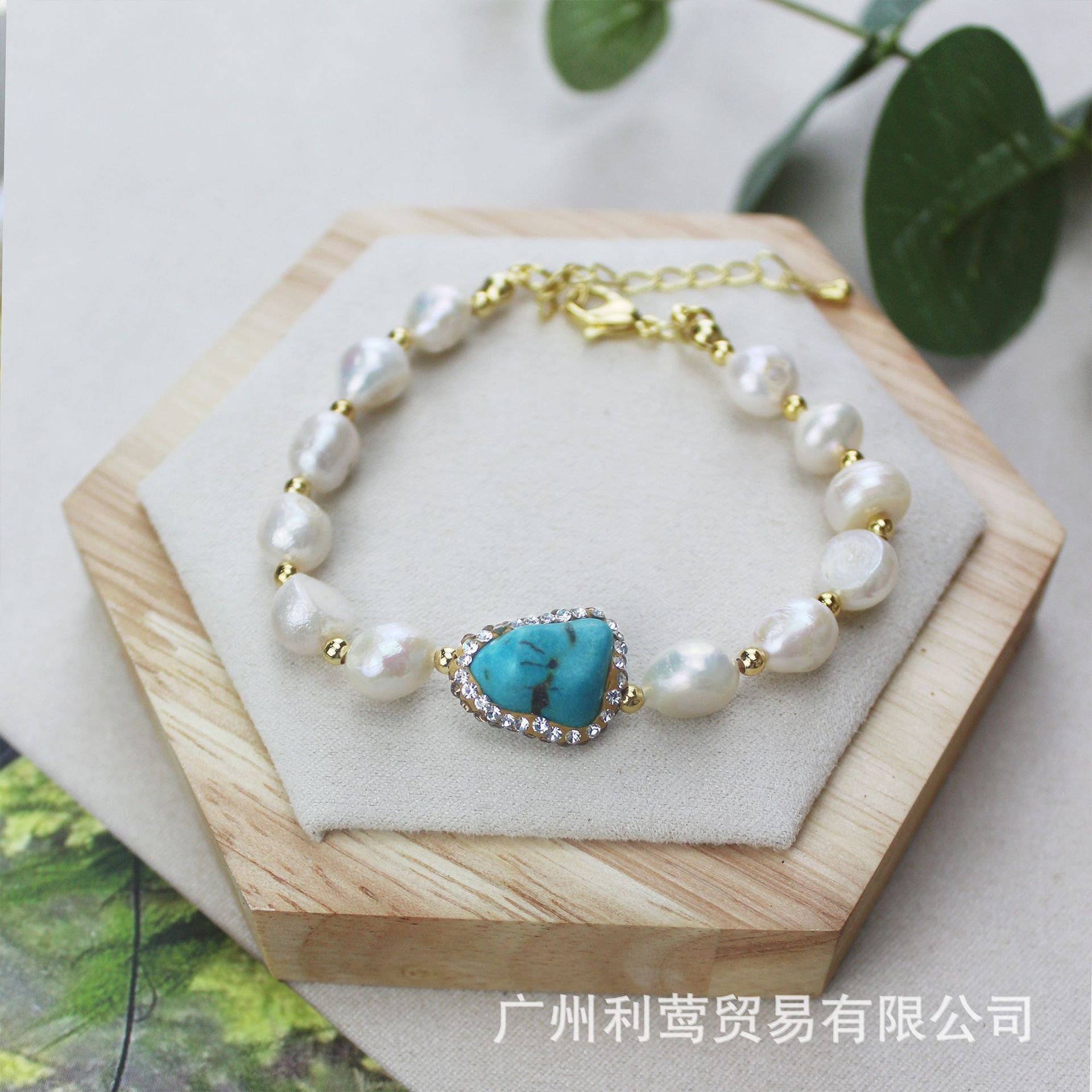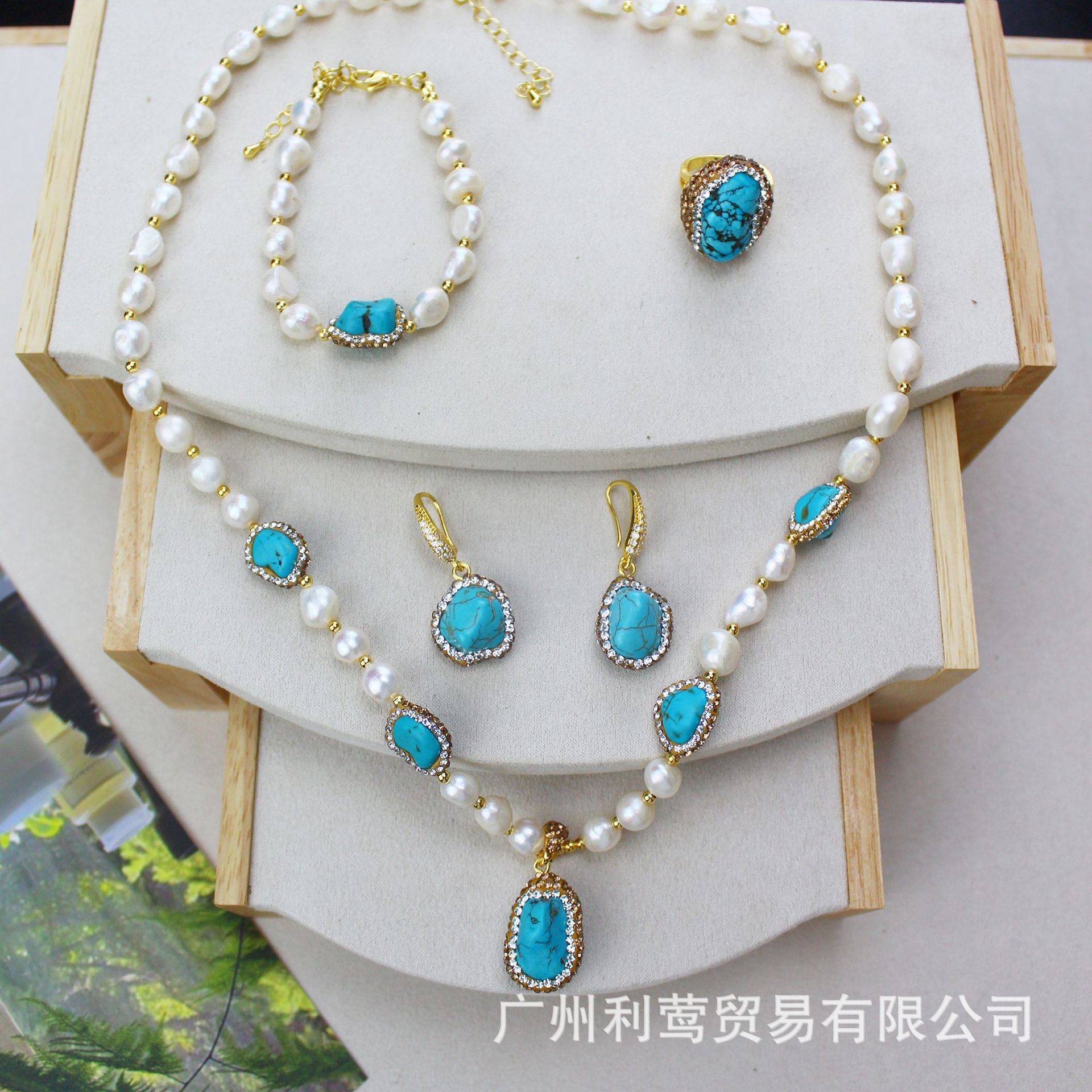 | nameOriginal | Baroque natural pearl necklace jewelry inlaid turquoise stone jewelry suit exquisite fashion cross-border accessories |