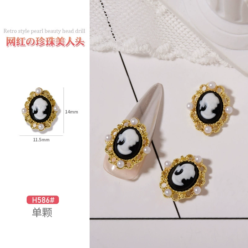 Baroque vintage pearl metal nail art jewelry