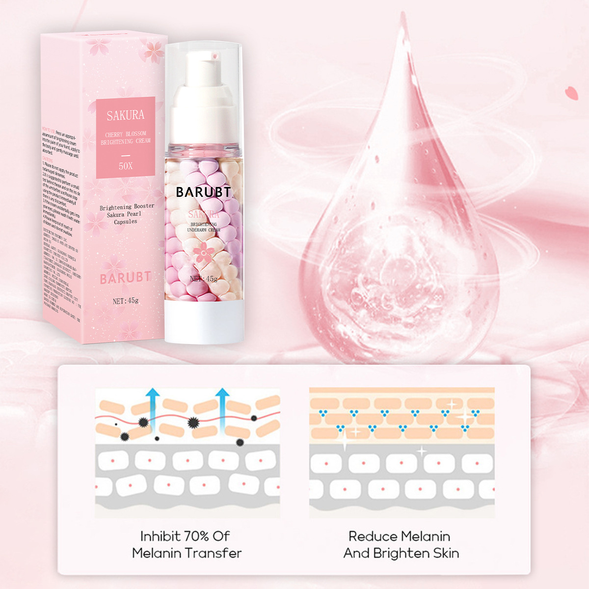 | nameOriginal | BARUBT Cross-border Cherry Blossom Underarm Whitening Cream Melanin Precipitation Hydrating Body Care Cream |