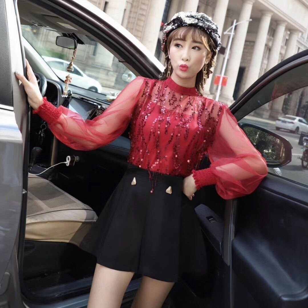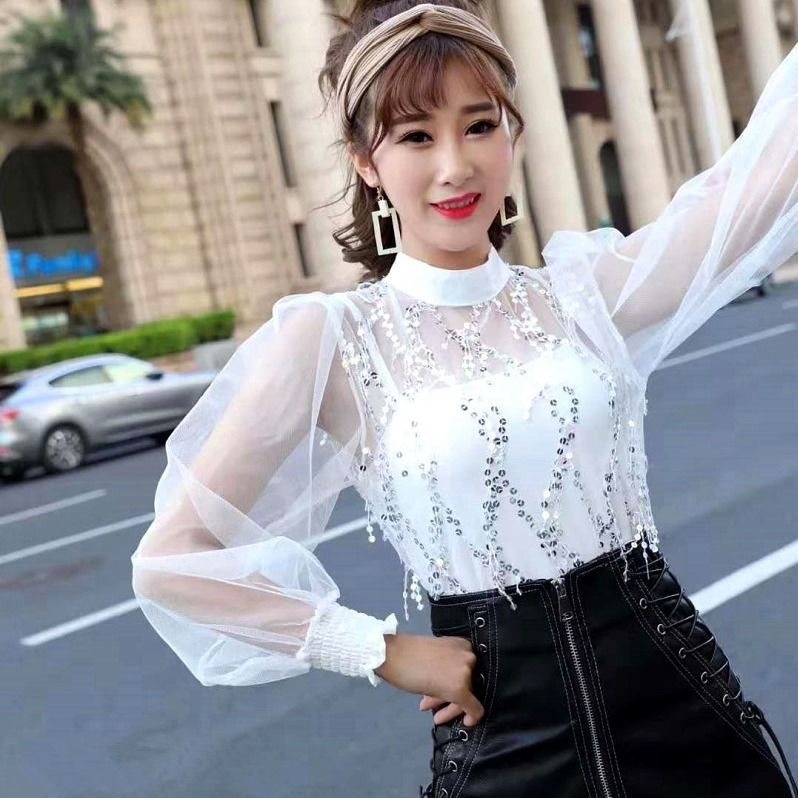 | nameOriginal | Base Shirt Lantern Long Sleeve 2022 Spring and Autumn New Perspective Mesh Fairy Top Sweet Sexy Doll Chiffon Shirt |