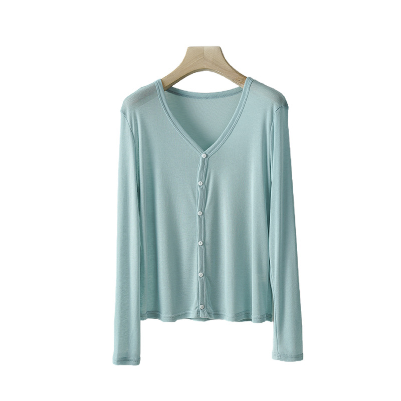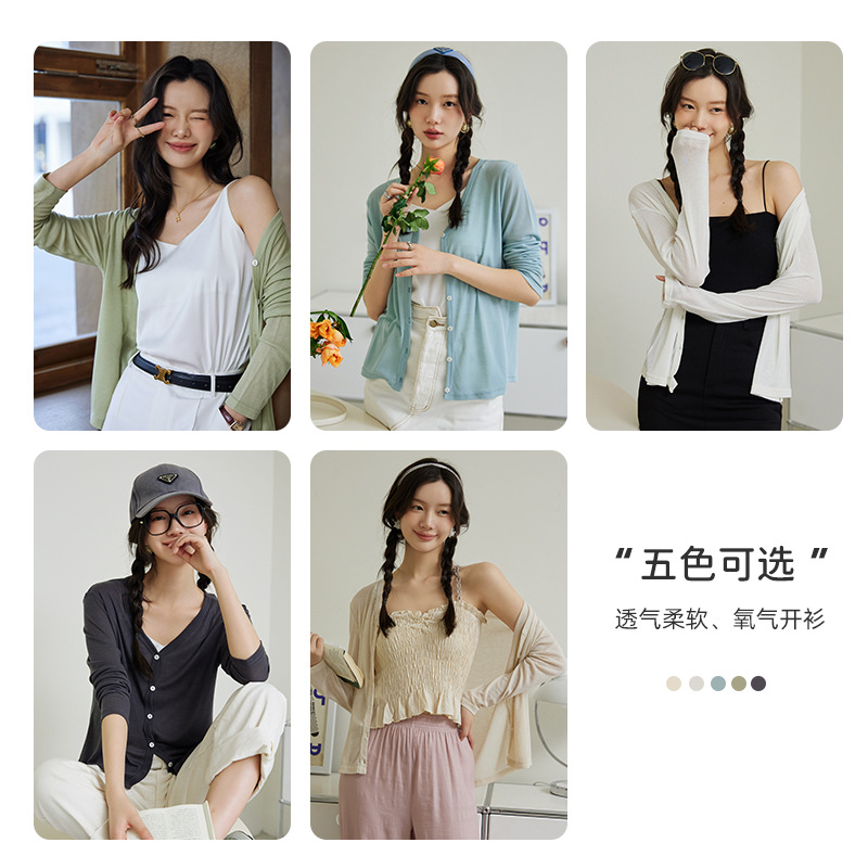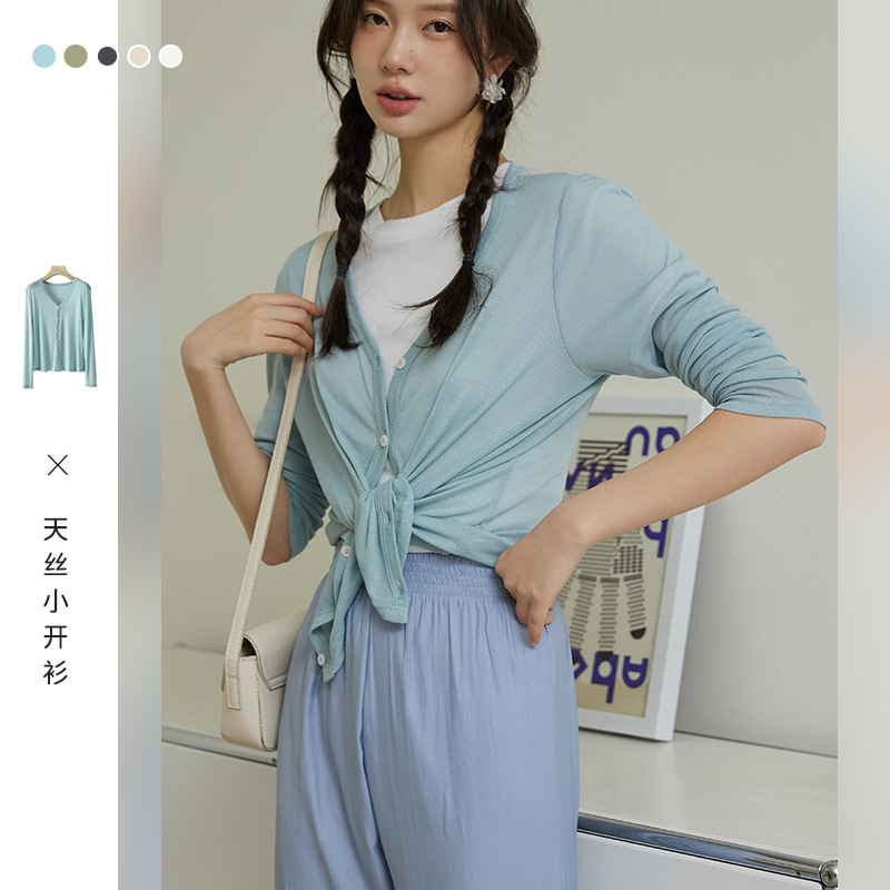 | nameOriginal | Base Shirt Women's Korean-style V-neck Sweater Solid Color Summer Air-conditioning Shirt Outer Wear Long-sleeved Tencel Cardigan Slim-fit Slim-fit |